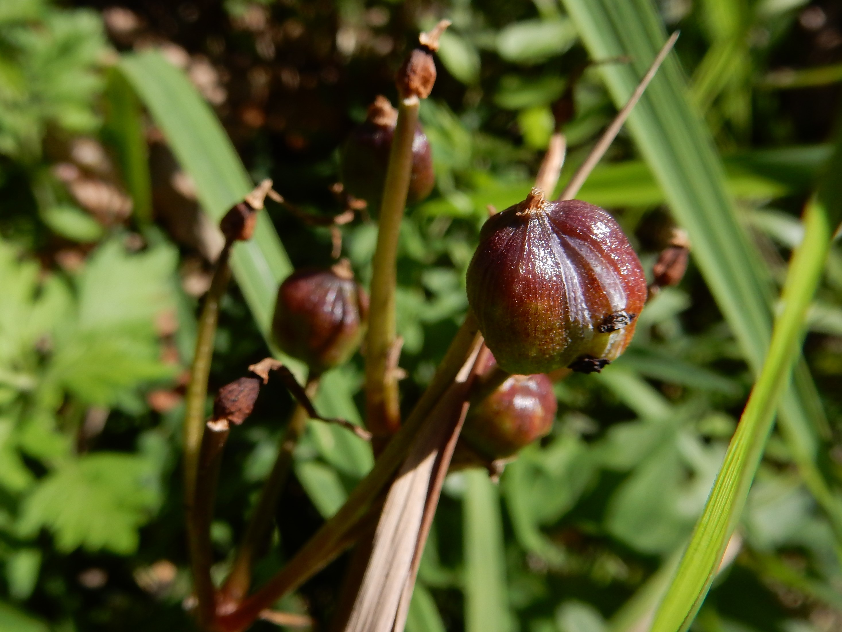 同じ仲間のヒガンバナやナツズイセンは渡来種で、一般には結実しないのに対して、キツネノカミソリは在来種で、結実します。4×3.5㎜と比較的大きな円形の種子を作ります。斜面を転がるように移動して分布を広げます。斜面の下の方に多く生育する所以です。