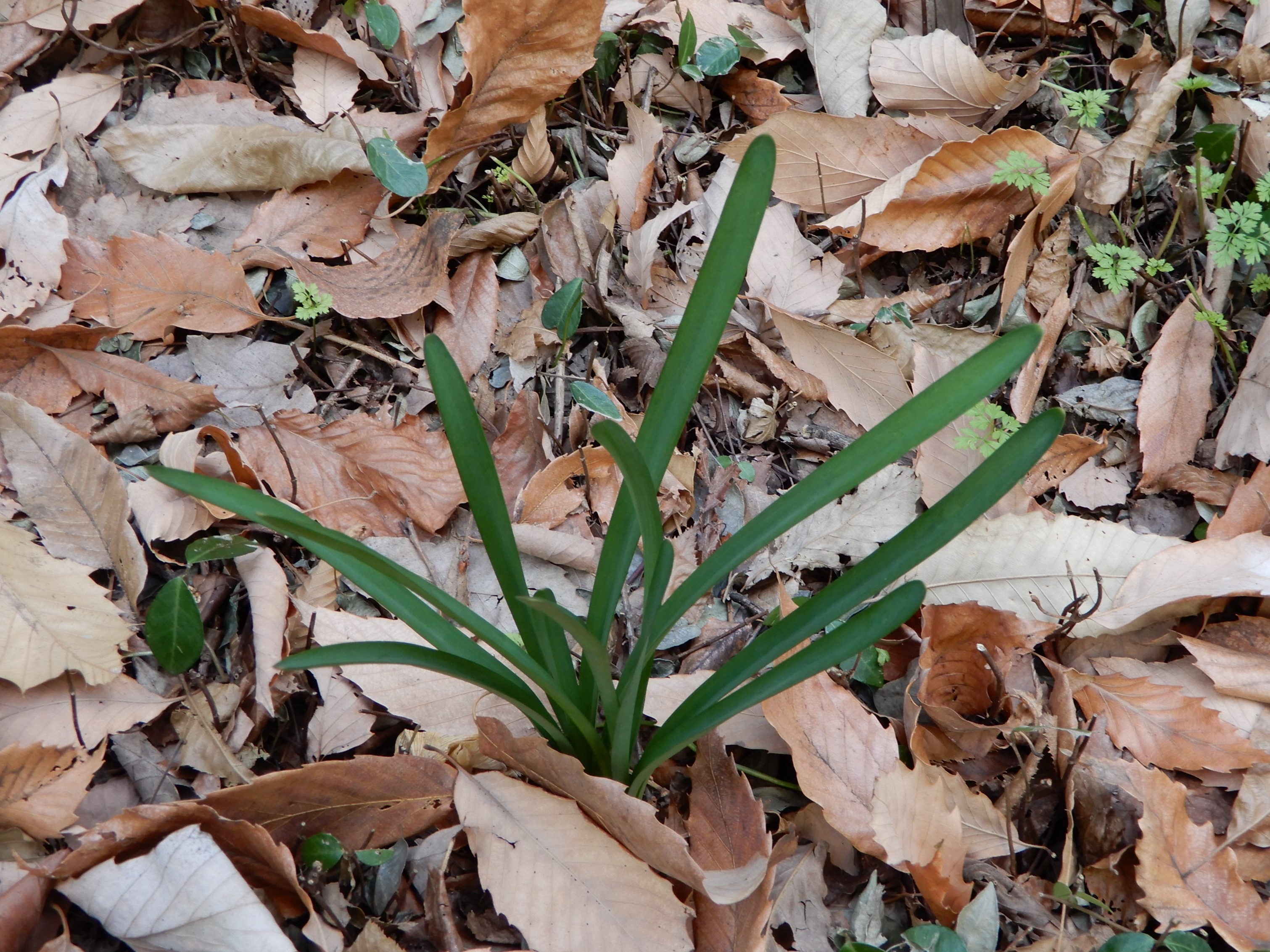 ヒガンバナの仲間で、花の時期には葉がありません。早春に出る葉が剃刀のように見えるという意味のようです。春早い時期、木々が葉を広げる前の雑木林に射し込む光を受けて、葉は光合成を行い、養分を溜めます。雑木林に夏が来て、草木が繁って光を独占できなくなる頃には葉を枯らして、花を咲かせます。