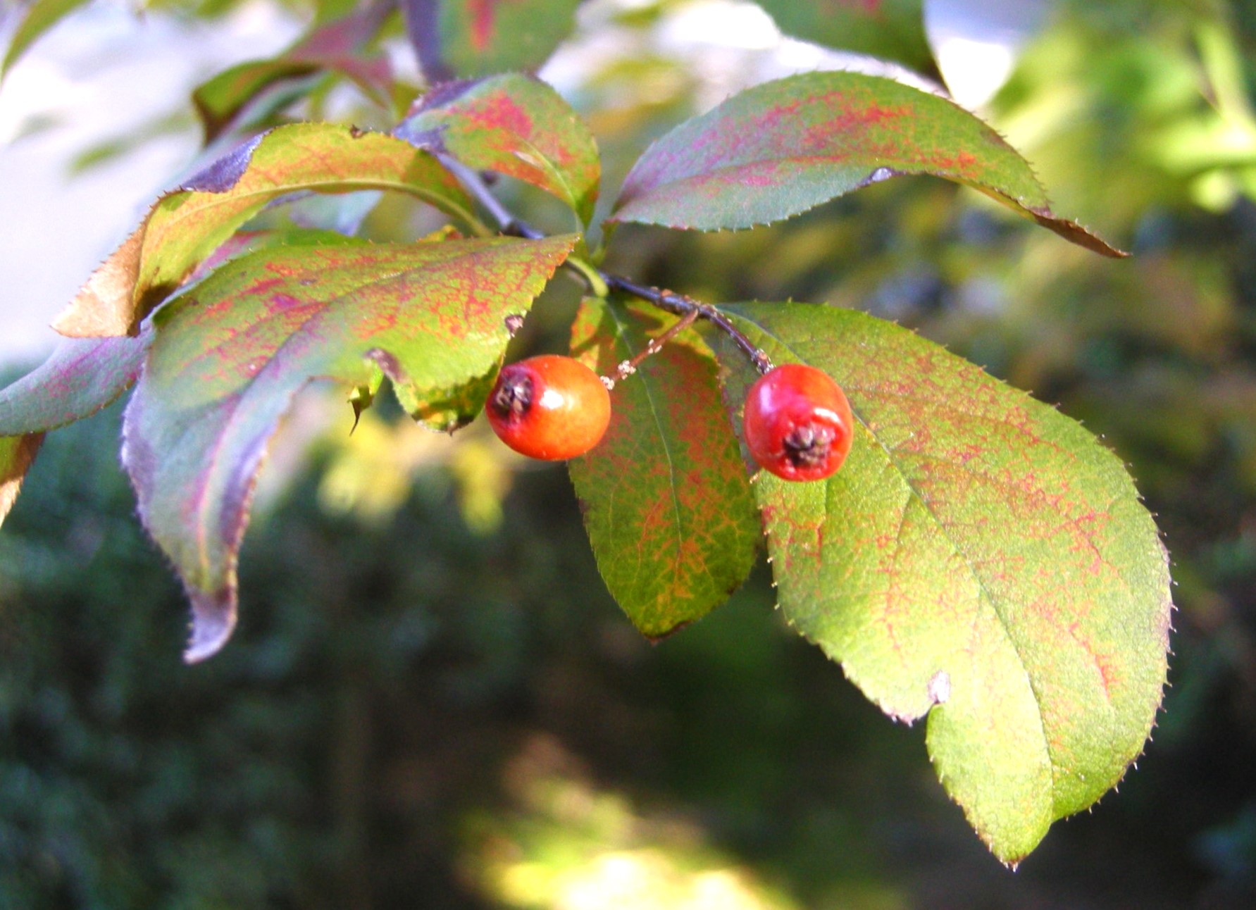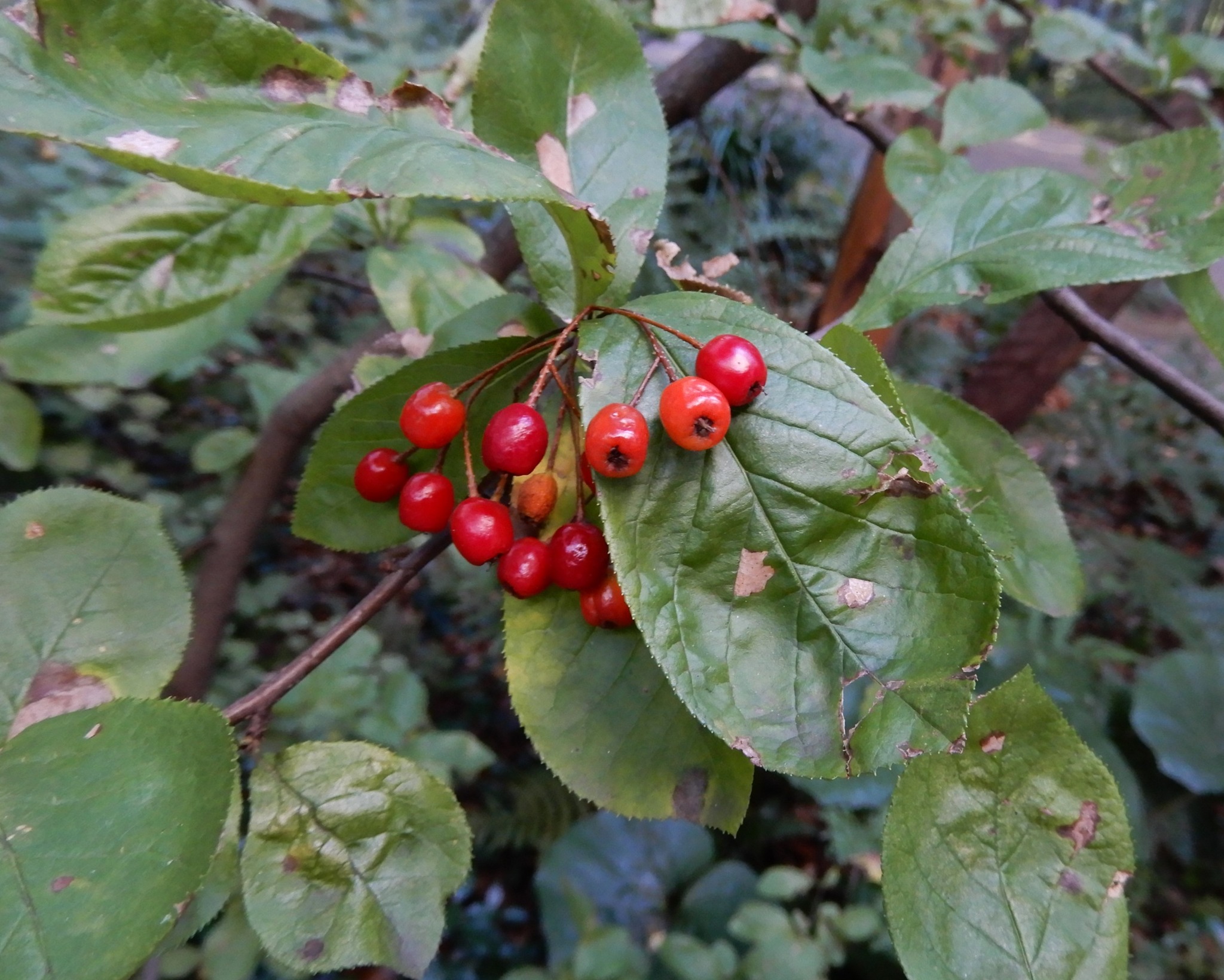 赤く熟した果実は、はじめはちょっと苦みがありますが、霜が降りた後は甘みが増して美味しく食べられます。小さいのが残念ですね。