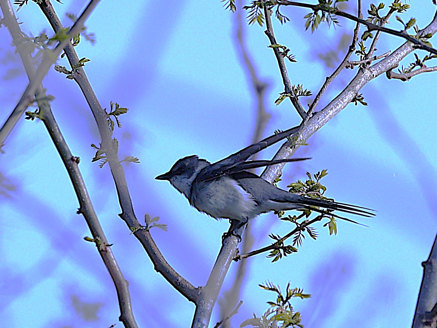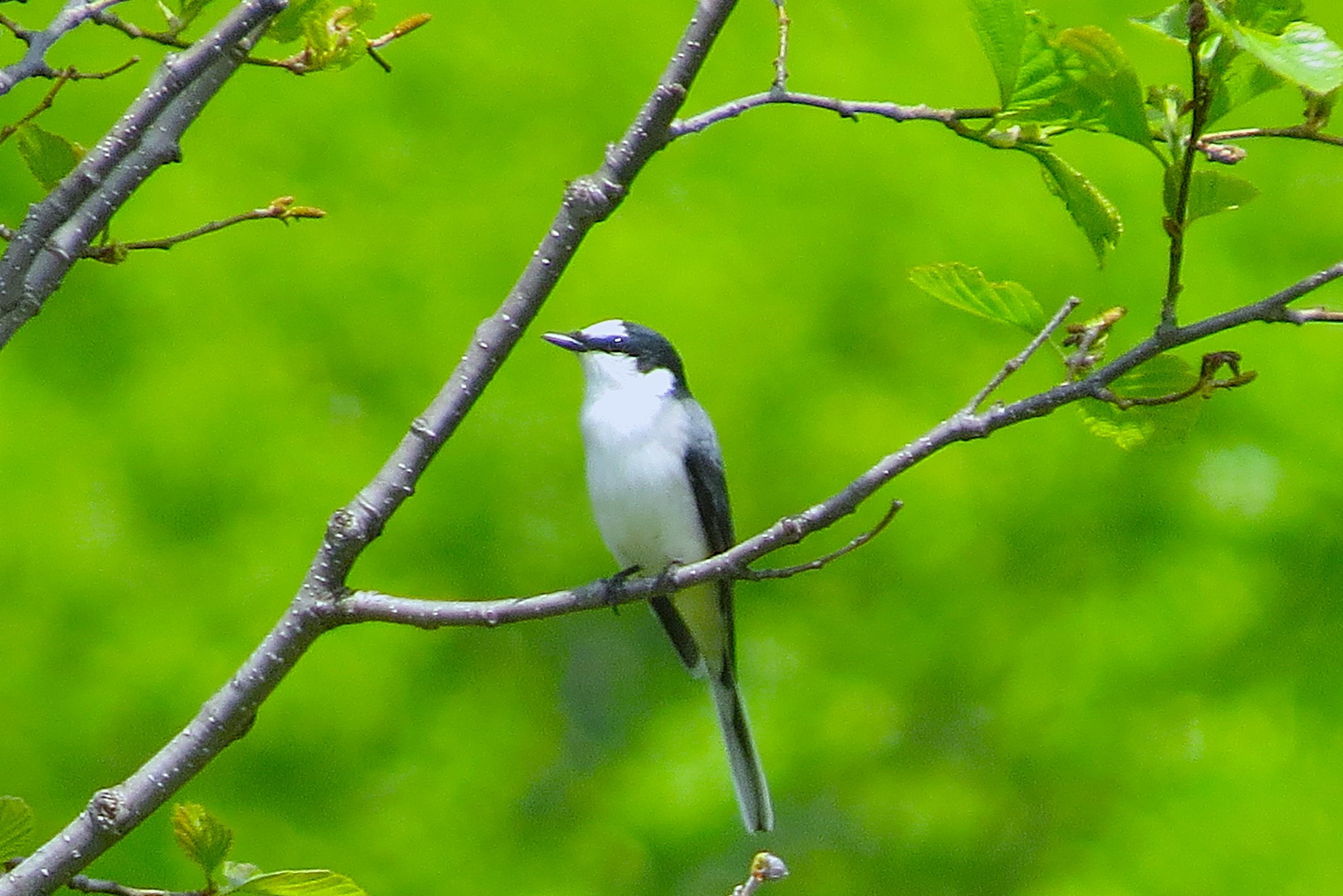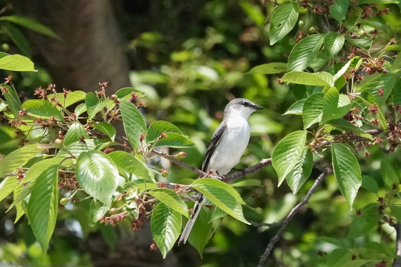 尾が長く細身でスマート、背の色は灰青色で胸から腹は白色、くちばしから目にかけて黒くはっきりした線が走り、キリッとした顔立ちでカッコイイ鳥です。