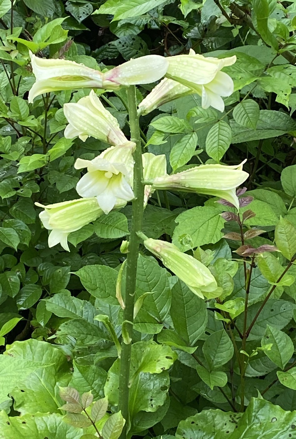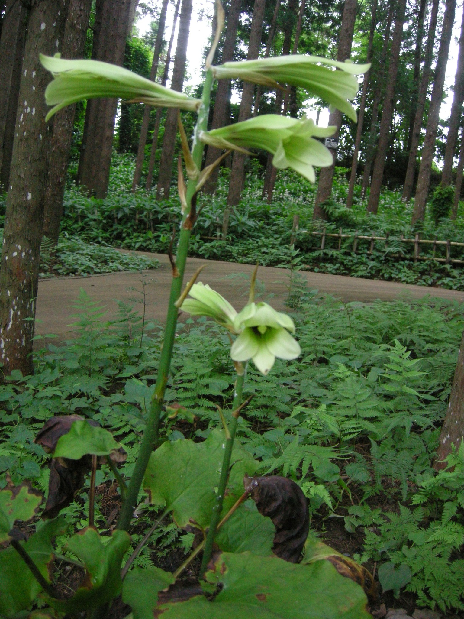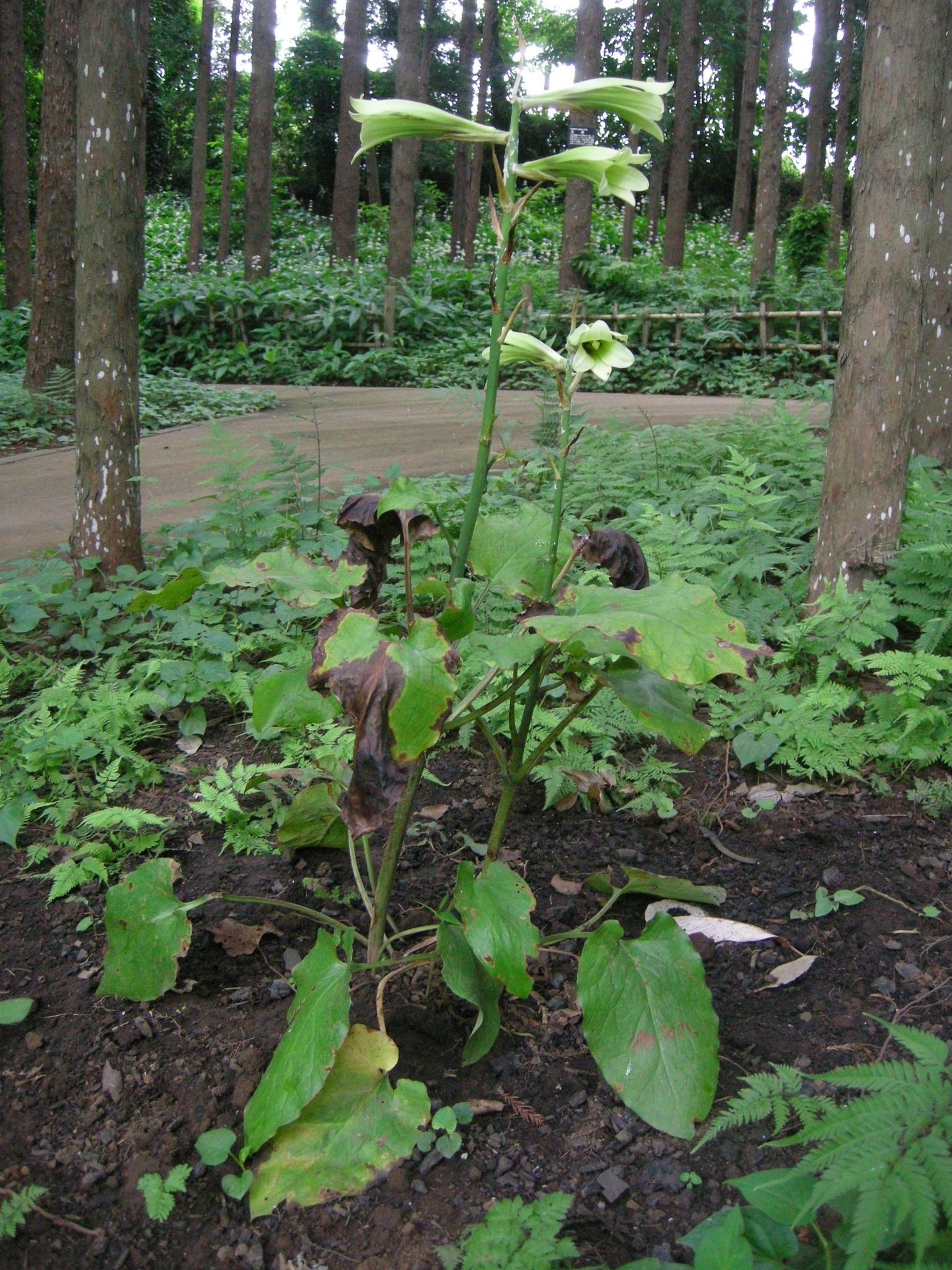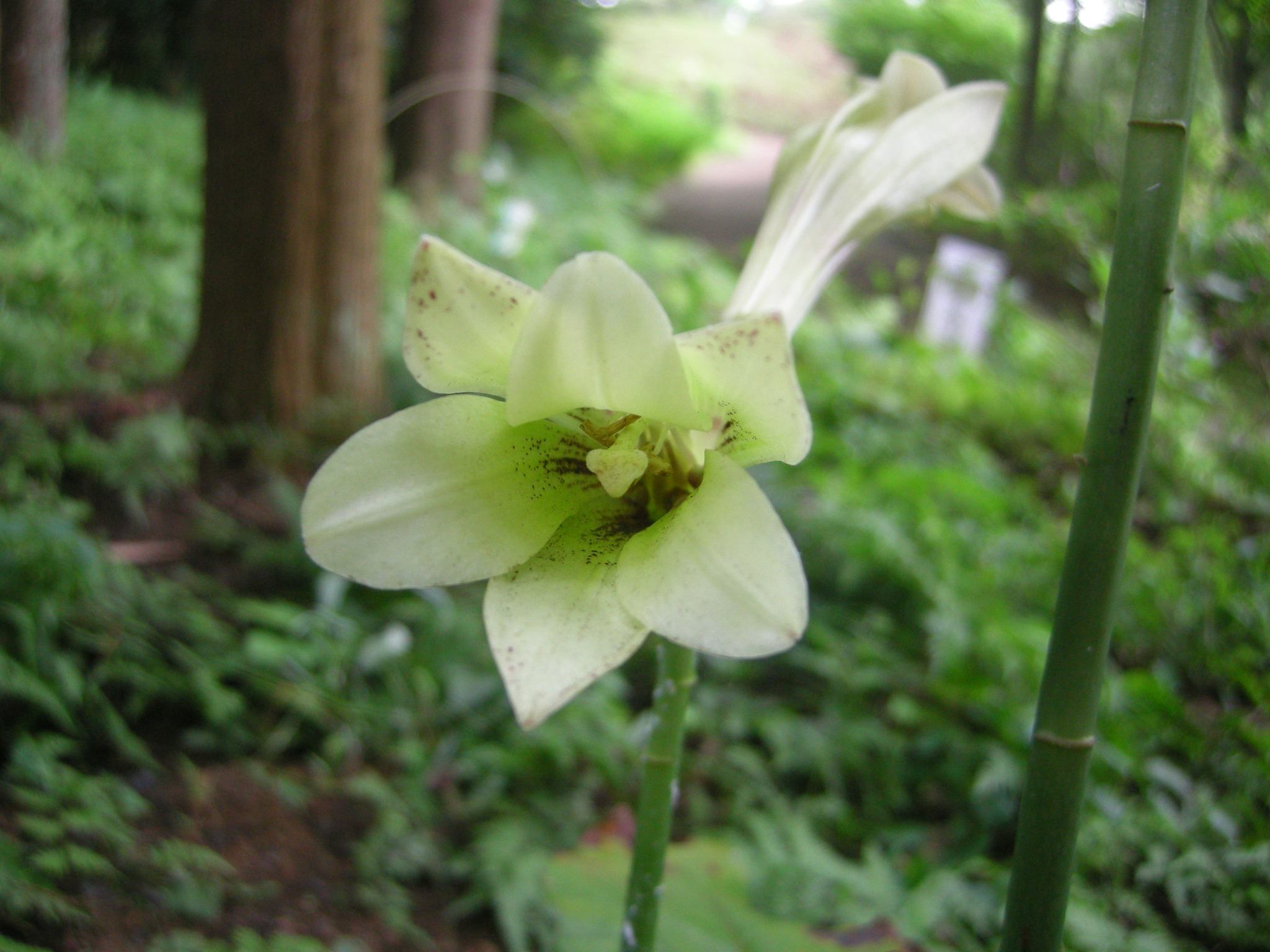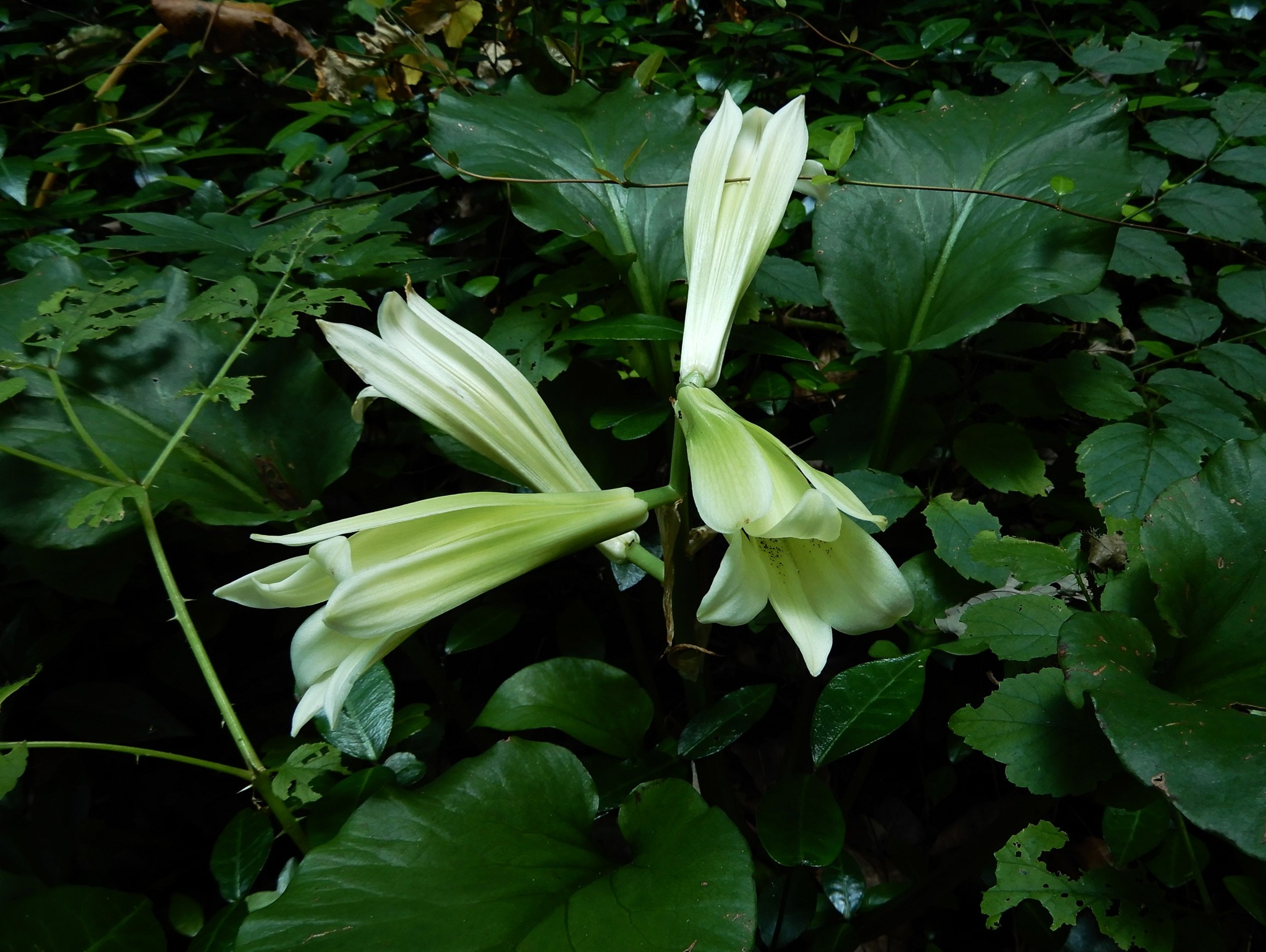 山中の木陰などで咲くユリの仲間です。開花時には草丈が1mを超える株もあり、ユリの仲間でも大型であることで知られています。