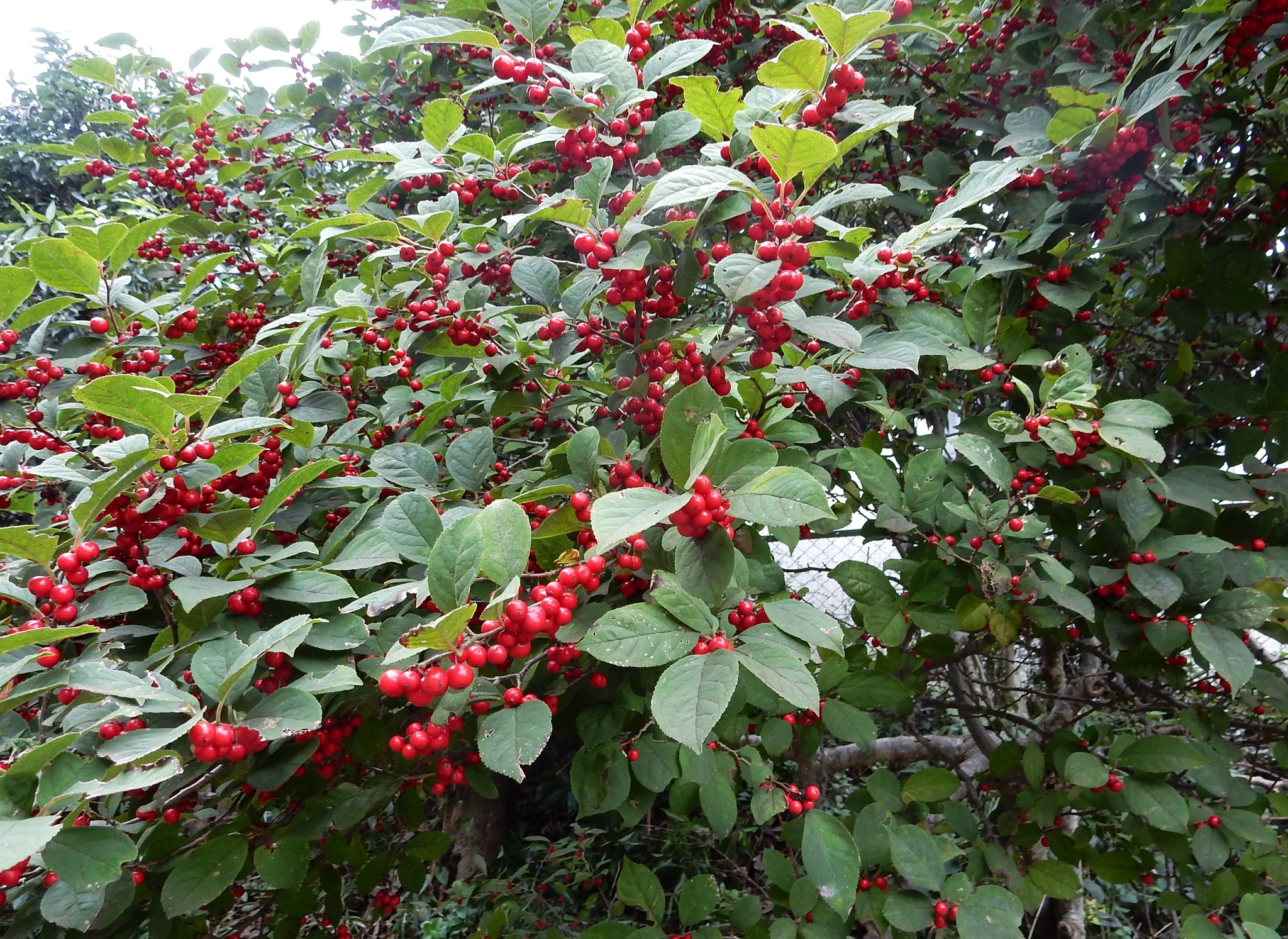 本来は山野に自生する植物なのですが、比較的育てやすく、赤い実が好まれるからでしょうか、公園樹、庭園樹として植えられているのを多く見かけます。