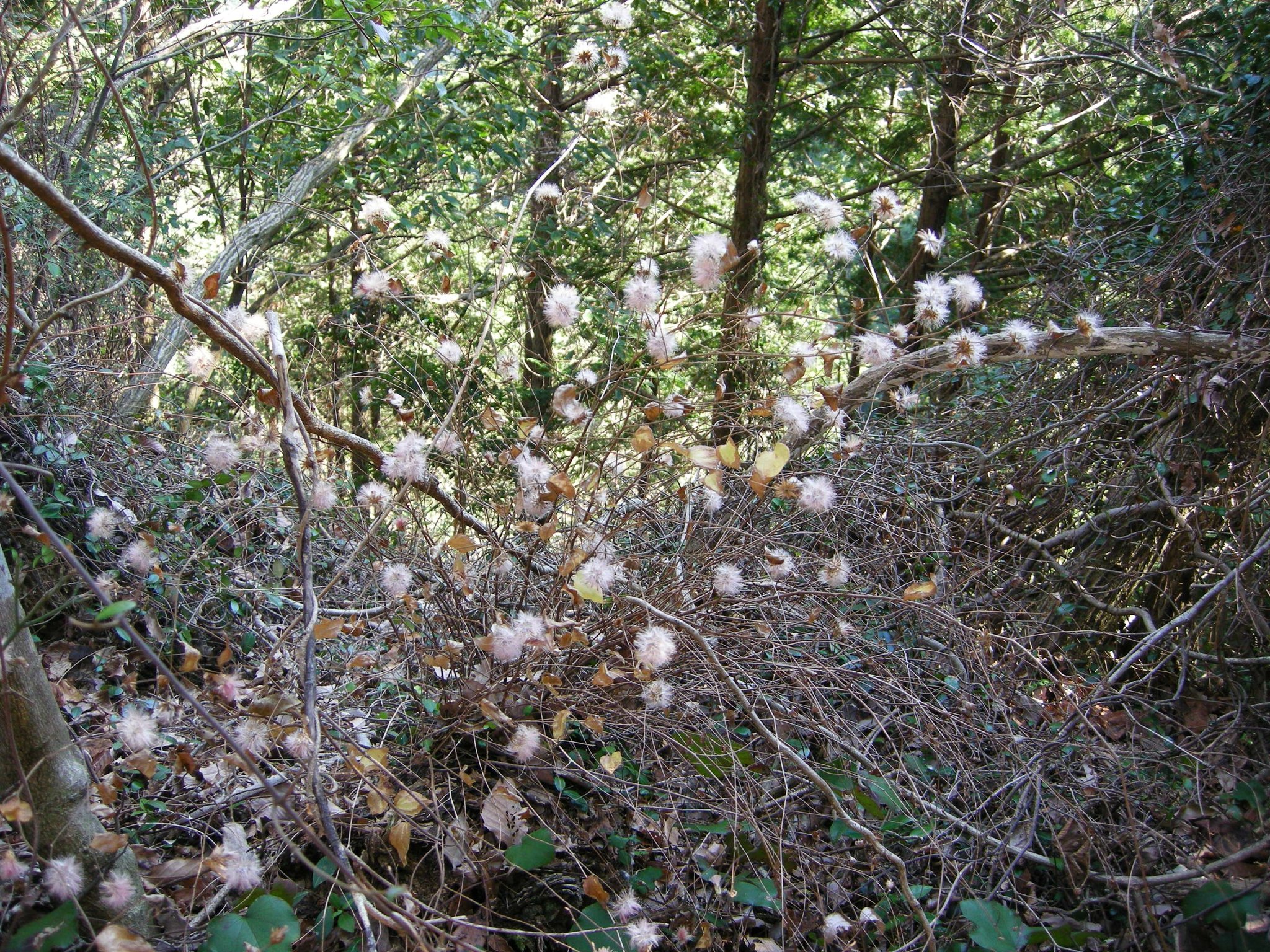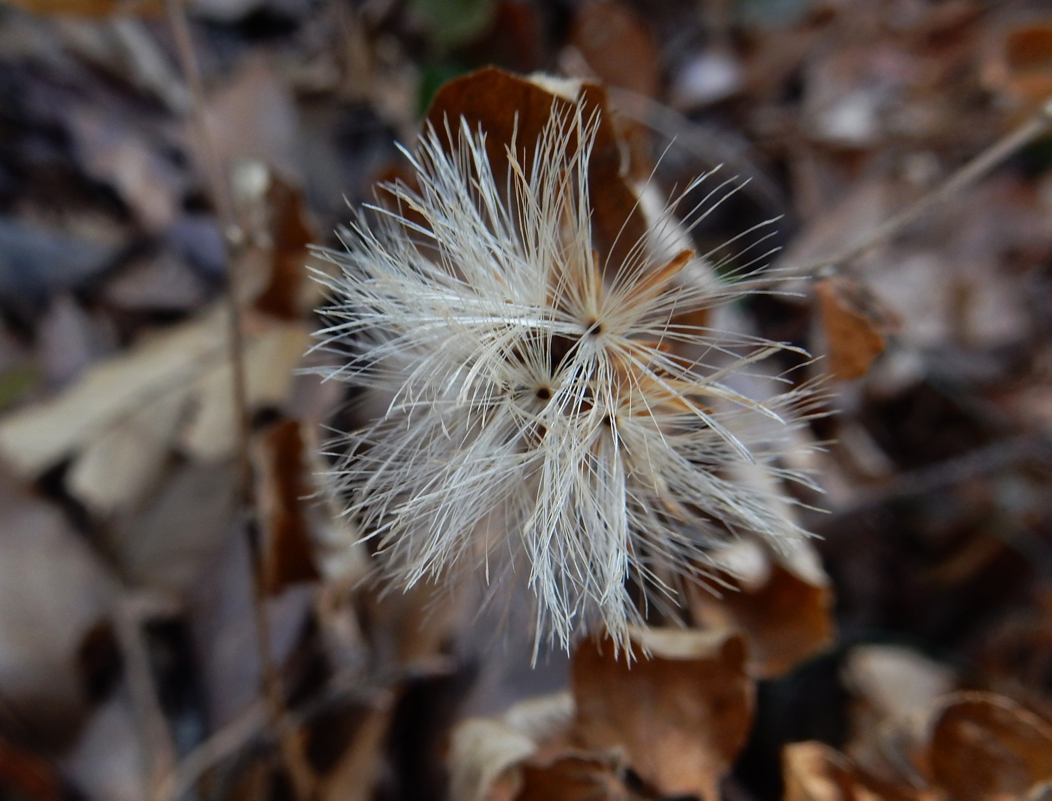 花後、長い冠毛のある果実は風に乗って飛散し、分布をひろげます。場所によって、かなり長い間、残っている光景も見かけます。