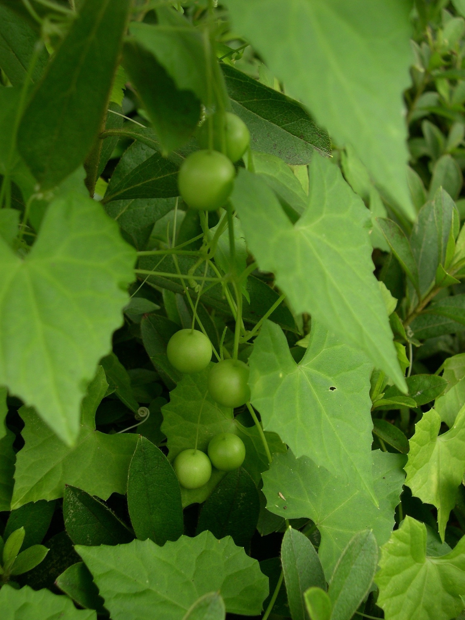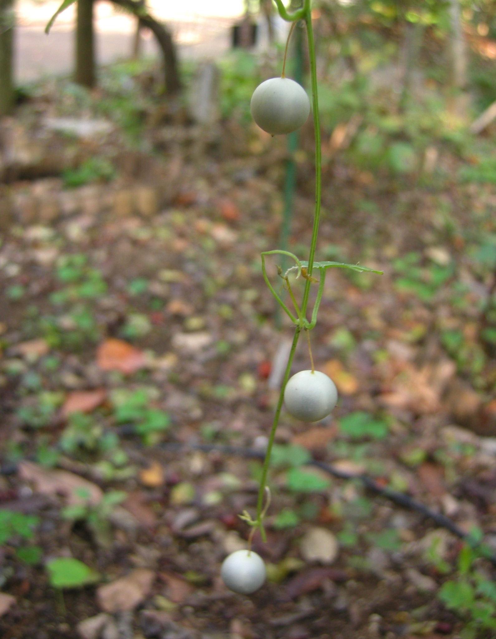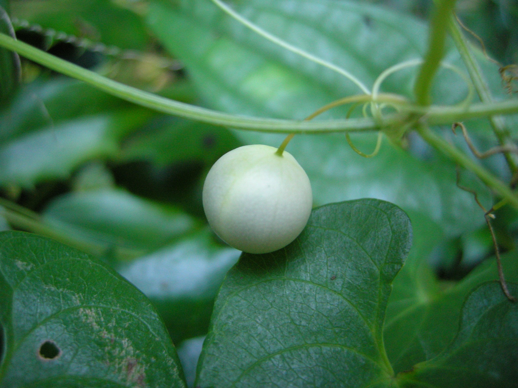 一年草なのですが、種子繁殖とは別に、蔓が地面に着地すると、その節から根が肥大して塊根となり、新しい別株を作って冬を越します。元の株は冬には枯れます。