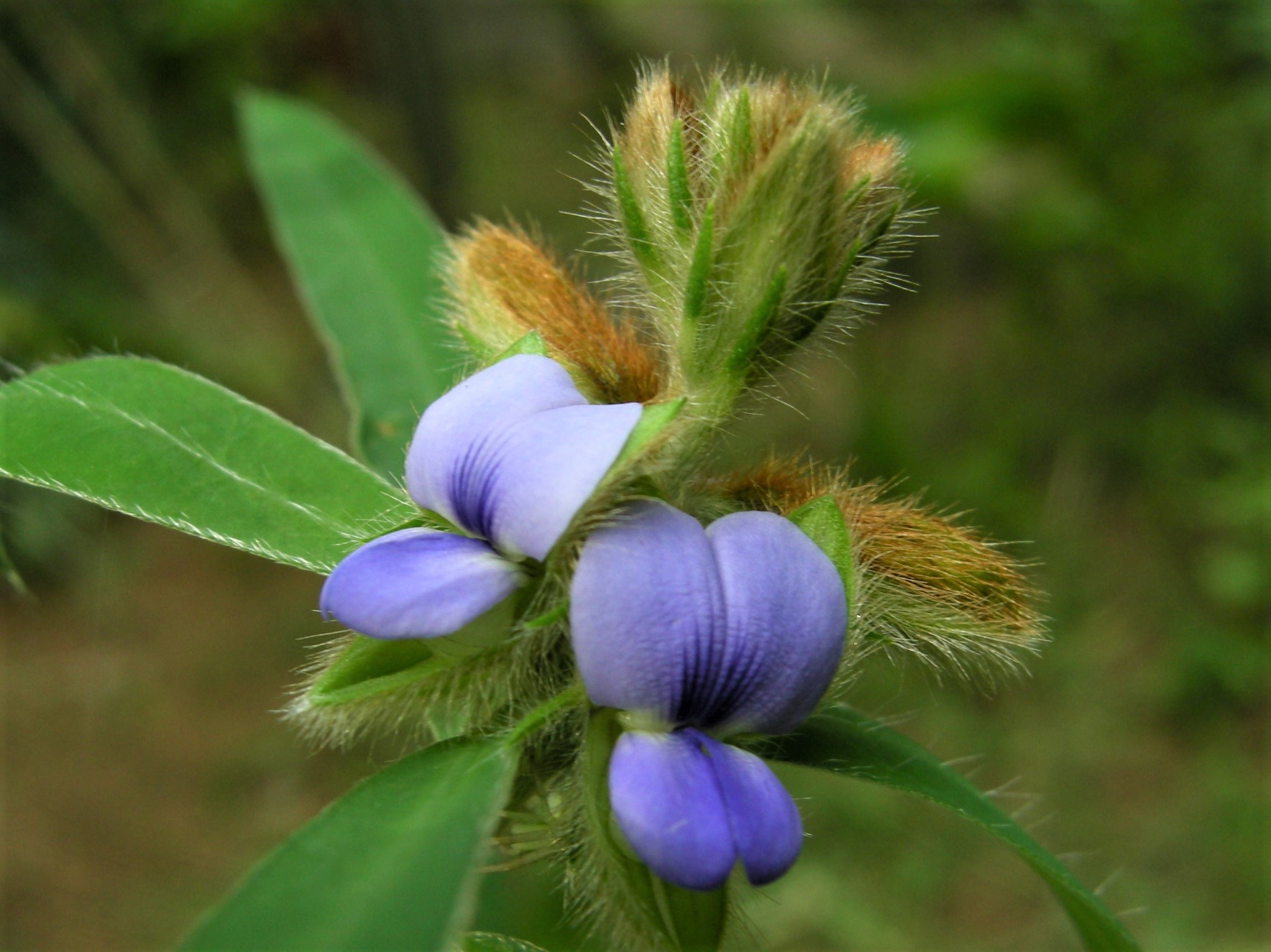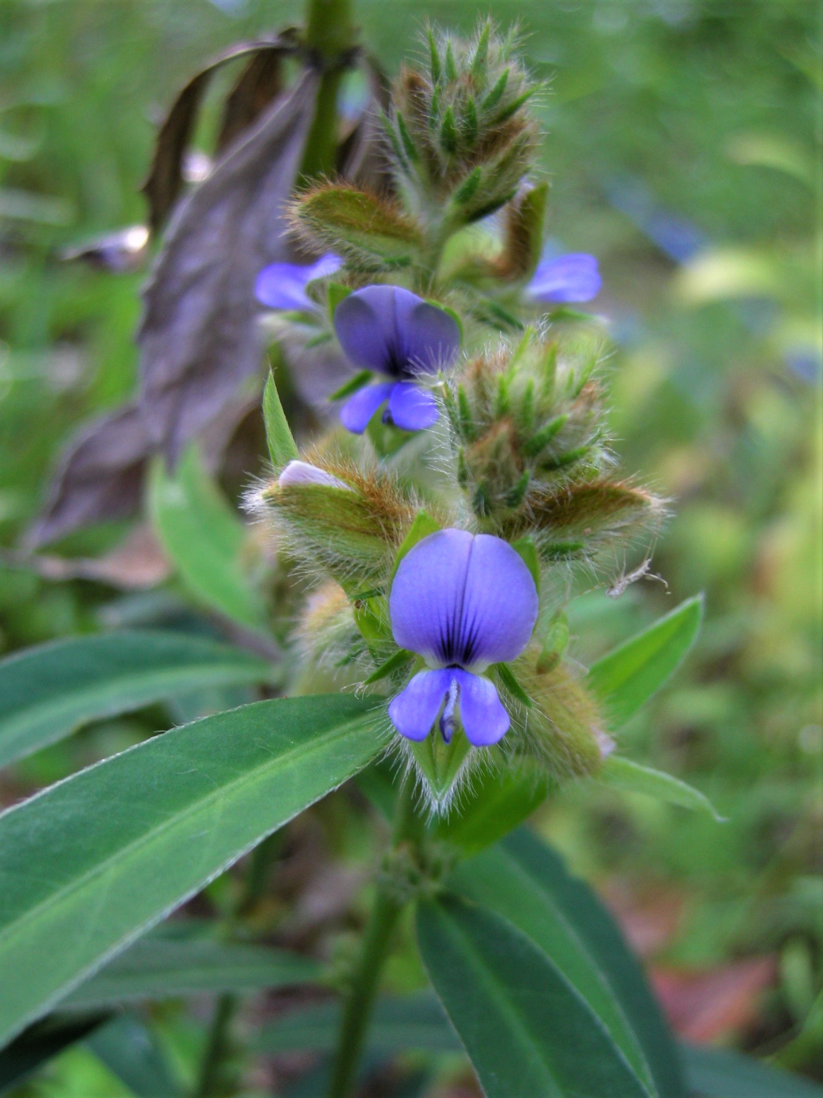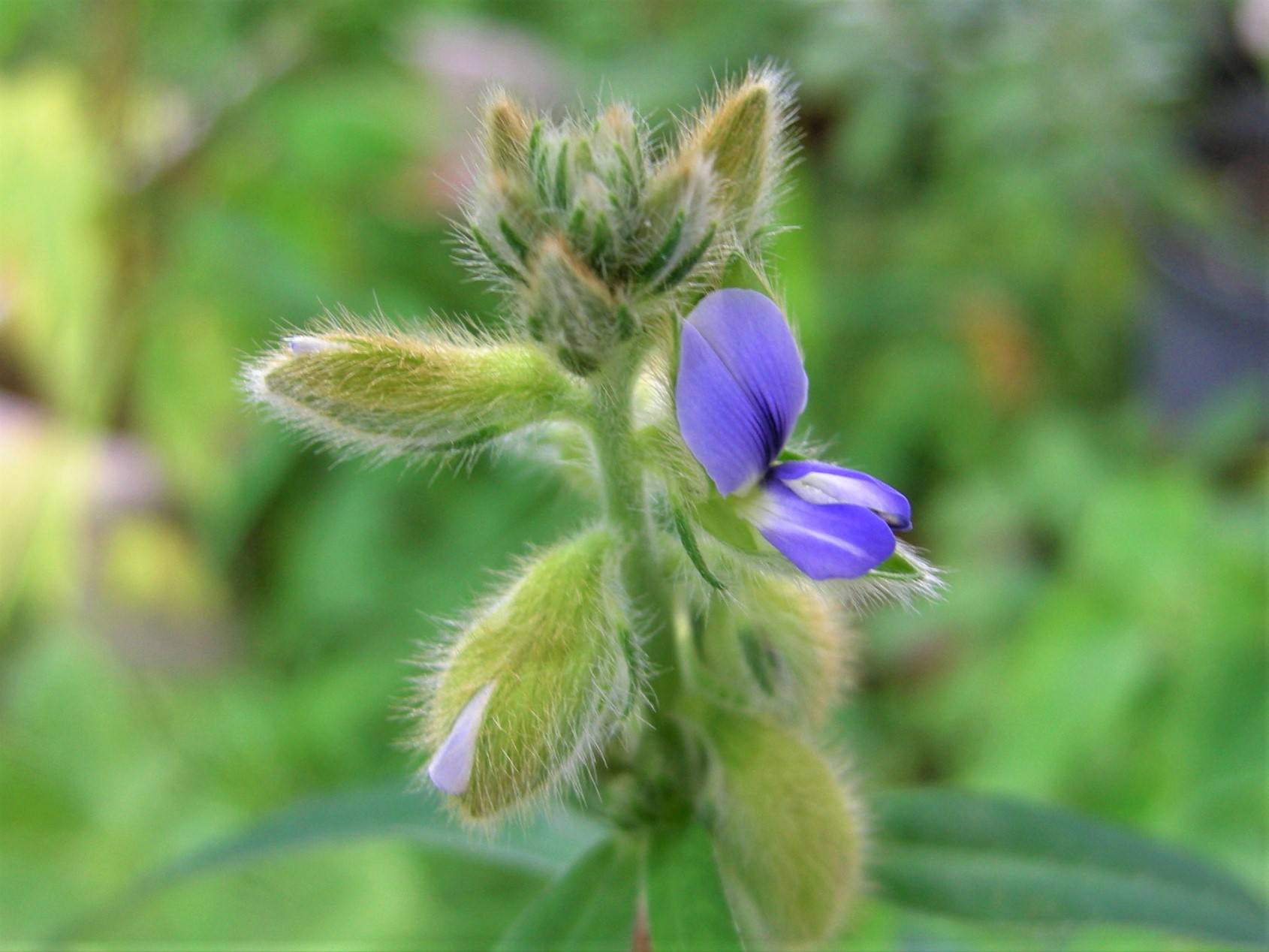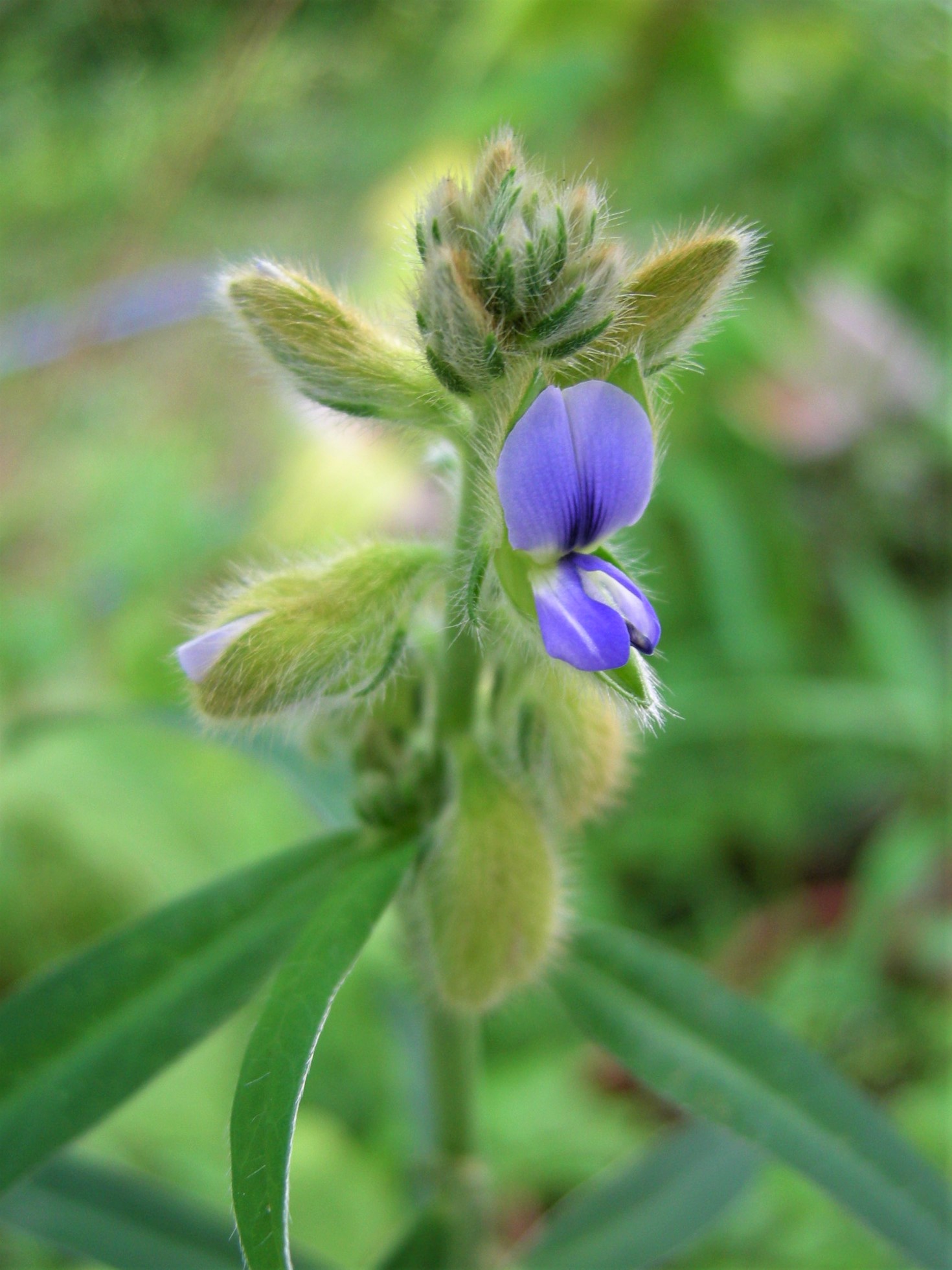 日当たりの良い、やや湿り気のある草地などに生えるマメ科の植物です。複葉の多いマメ科の中では珍しく単葉ですが、青紫色の花を見ると、マメ科を疑う余地はないですね。