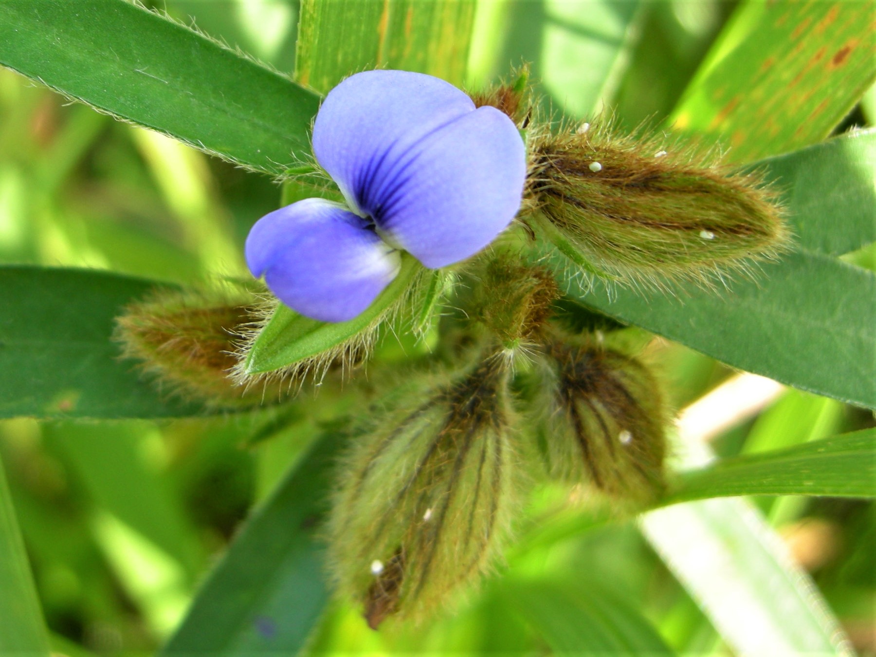 花は1㎝くらいあり、夏に咲くマメ科の植物にしては大振りで魅力的なのですが、お昼頃から咲いて、夕方には閉じてしまいます。暑い中、出かけないと見ることのできない花なのが残念です。