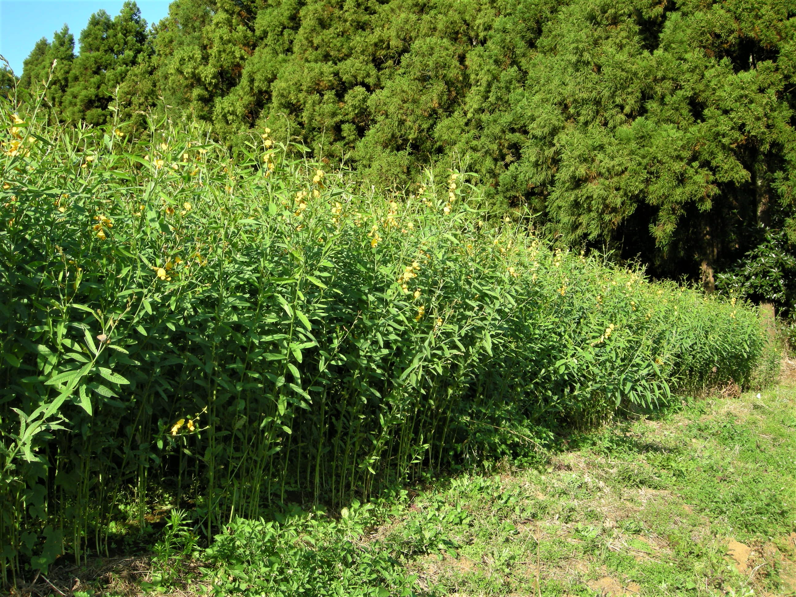 近年、サンヘンプと呼ばれる黄色い花を咲かせるタヌキマメの仲間を畑や道端で目にすることがあります。インド原産の植物で、緑肥として、あるいは根こぶ線虫対策として導入されたものです。
