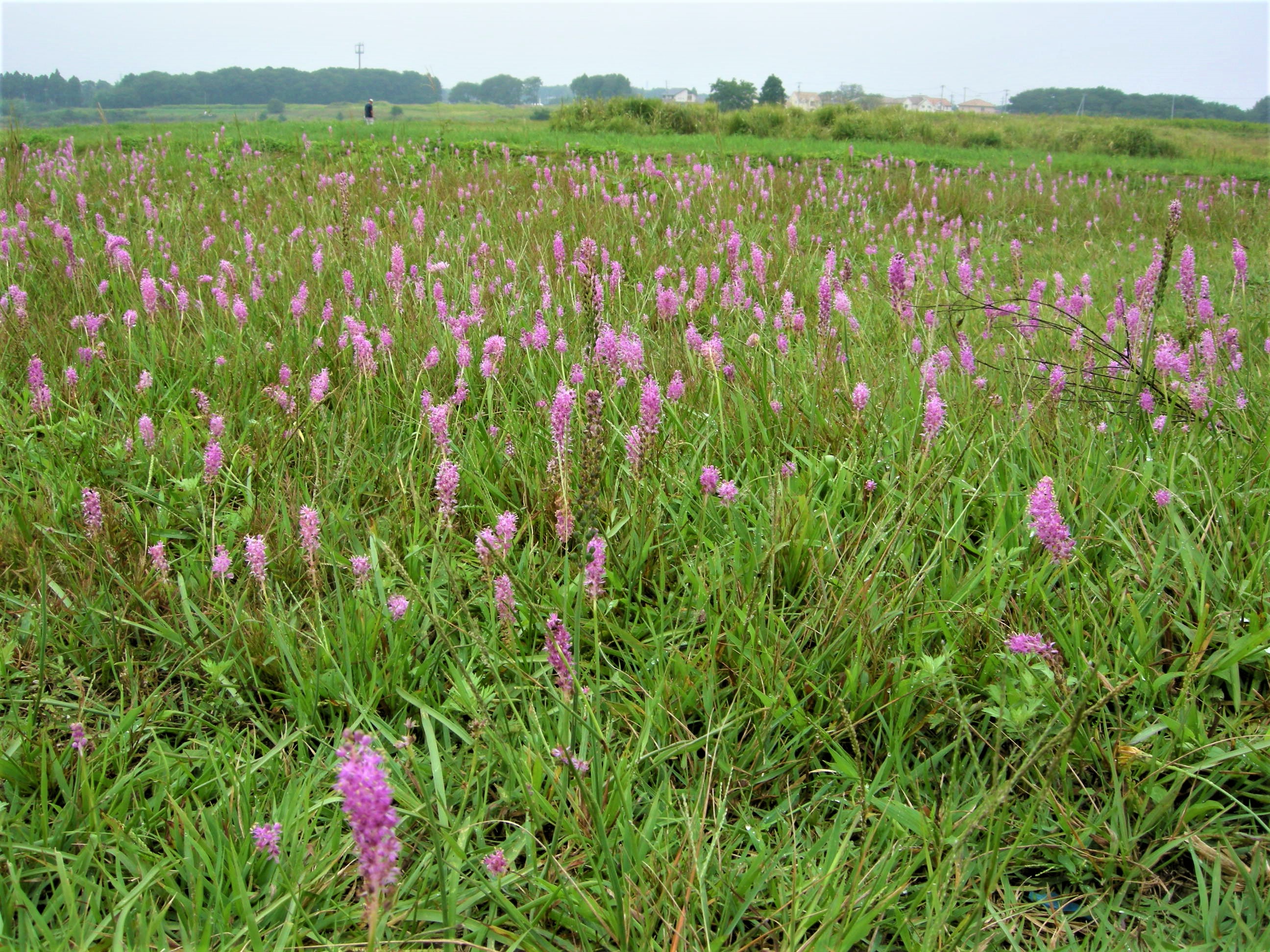 初秋の頃、草刈りの終わった日当たりの良い草地を覆うように咲く姿に驚かされます。