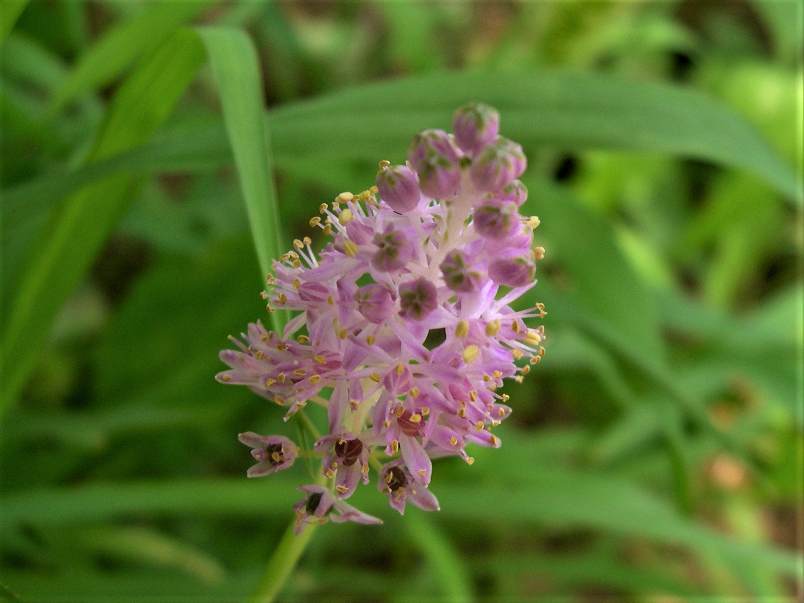 葉をちぎると、ちょっとネギのような匂いがします。小さなラッキョウを思わせるような鱗茎(りんけい 球根)があります。飢饉の時に晒して食べたという記録があるようですが、有毒ですので、不用意に口にすることは控えましょう。