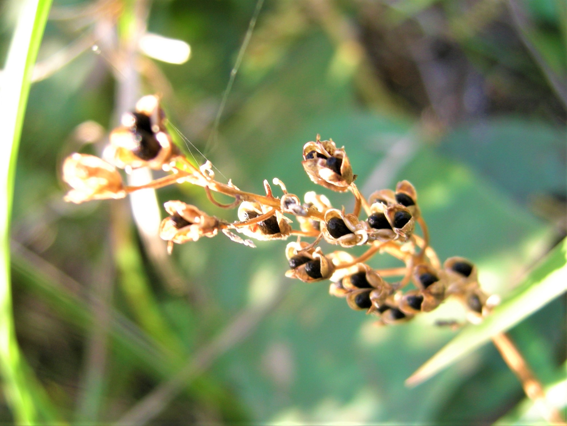 果実は3室に分かれていて、各室に1個の種子が見られます。