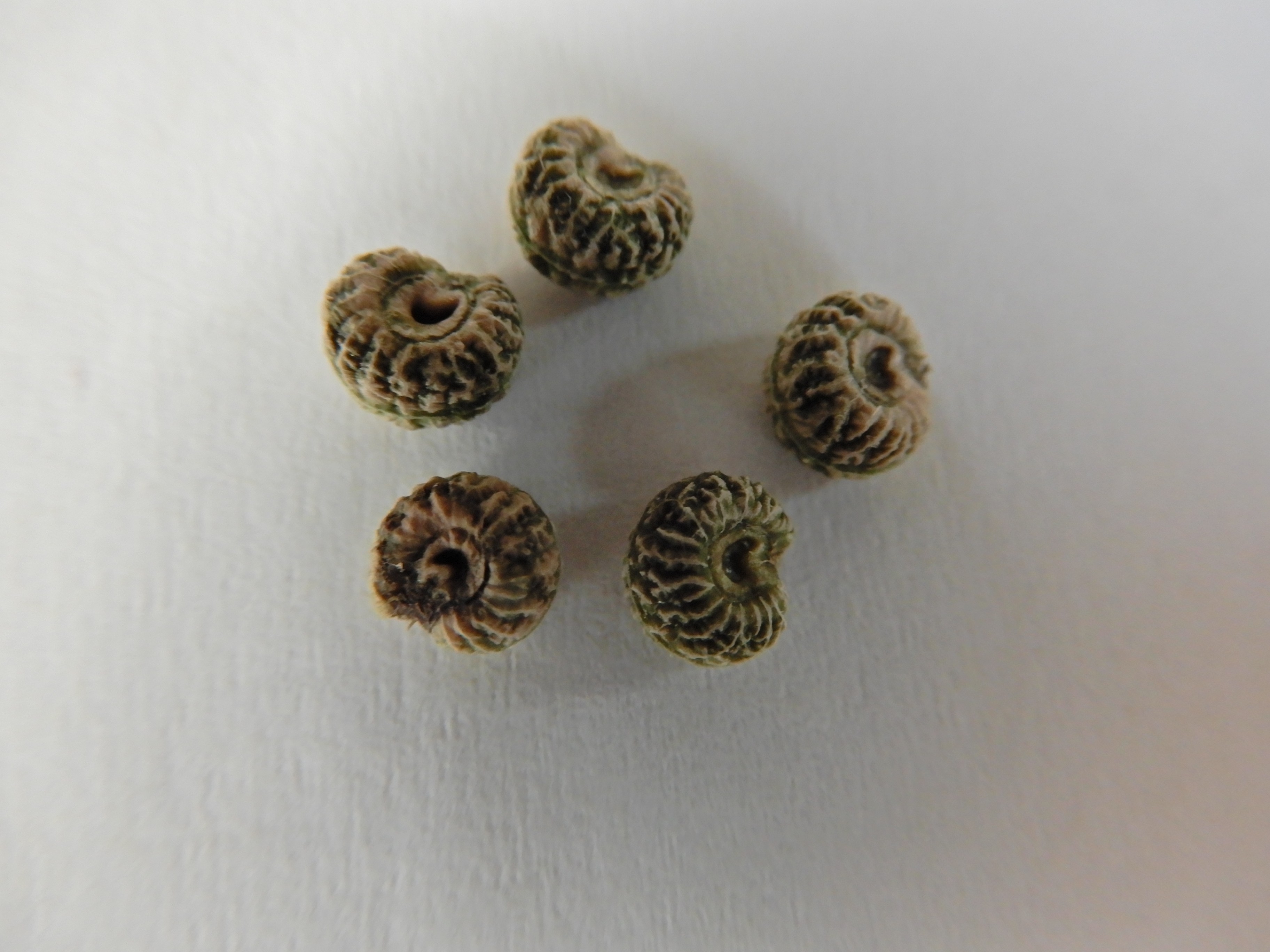 渦を巻いたような種子の形が、アンモナイトに喩えられて人気です。
