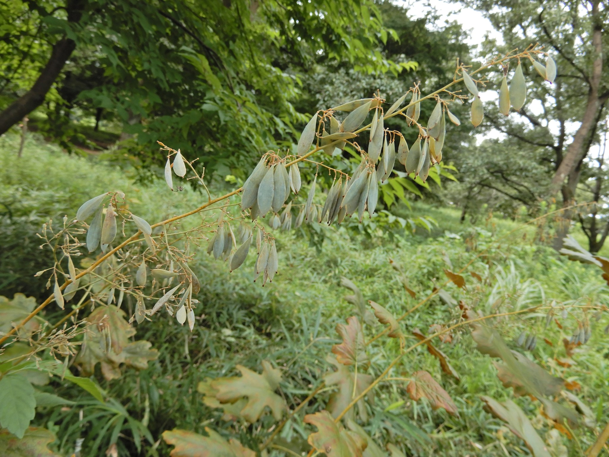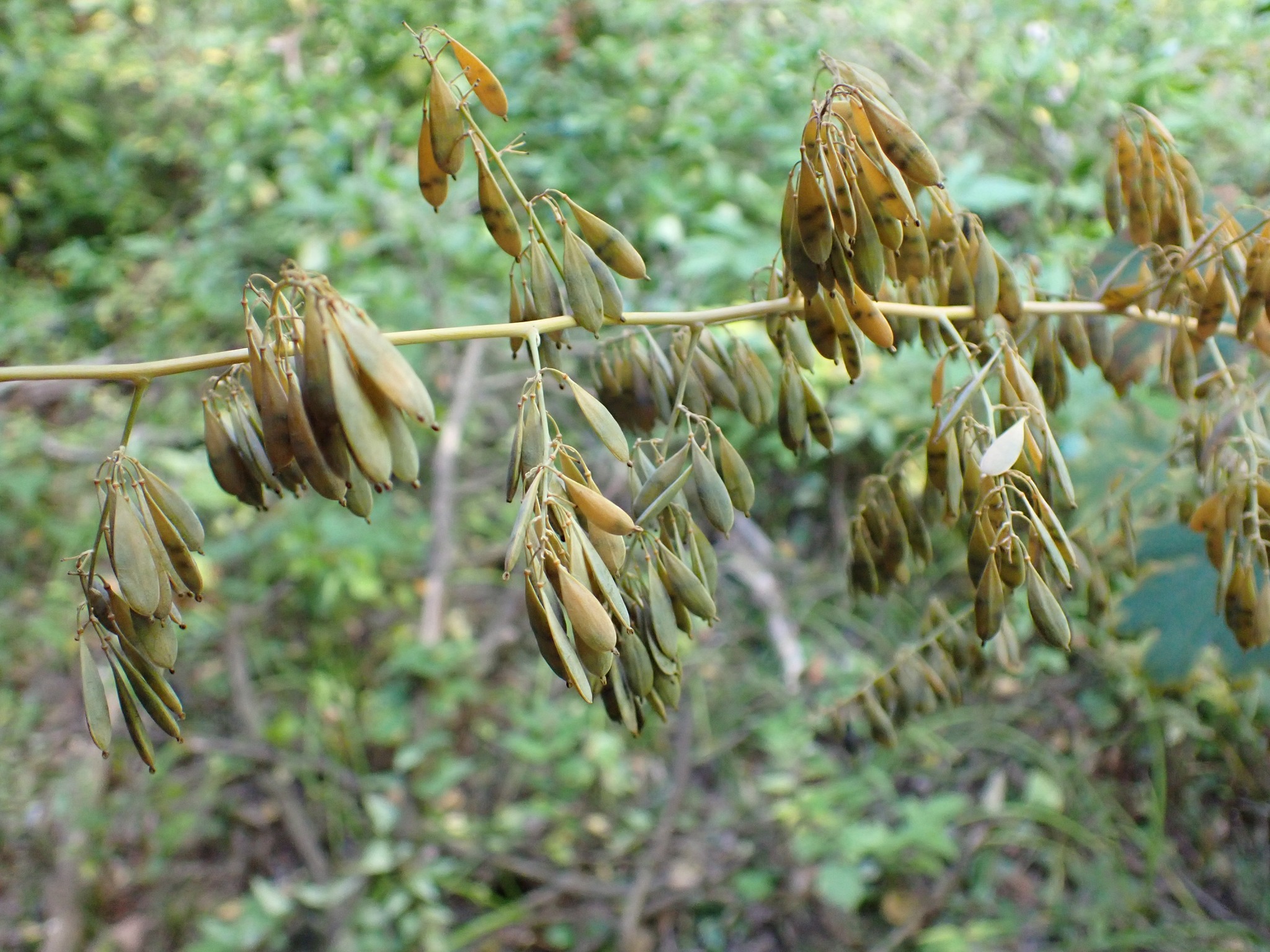 細長い莢のような果実の中の種子には脂肪酸など、アリの好きな物質が付着しており、莢が風で運ばれた後、裂開し、種子をアリが運ぶという報告があります。