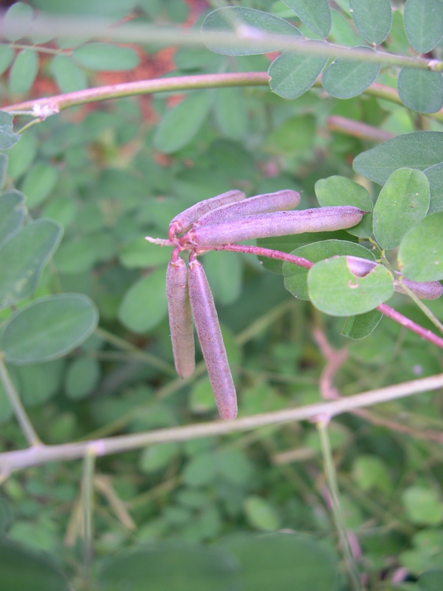 花後に円柱形の豆果ができ、数個の豆が入っています。