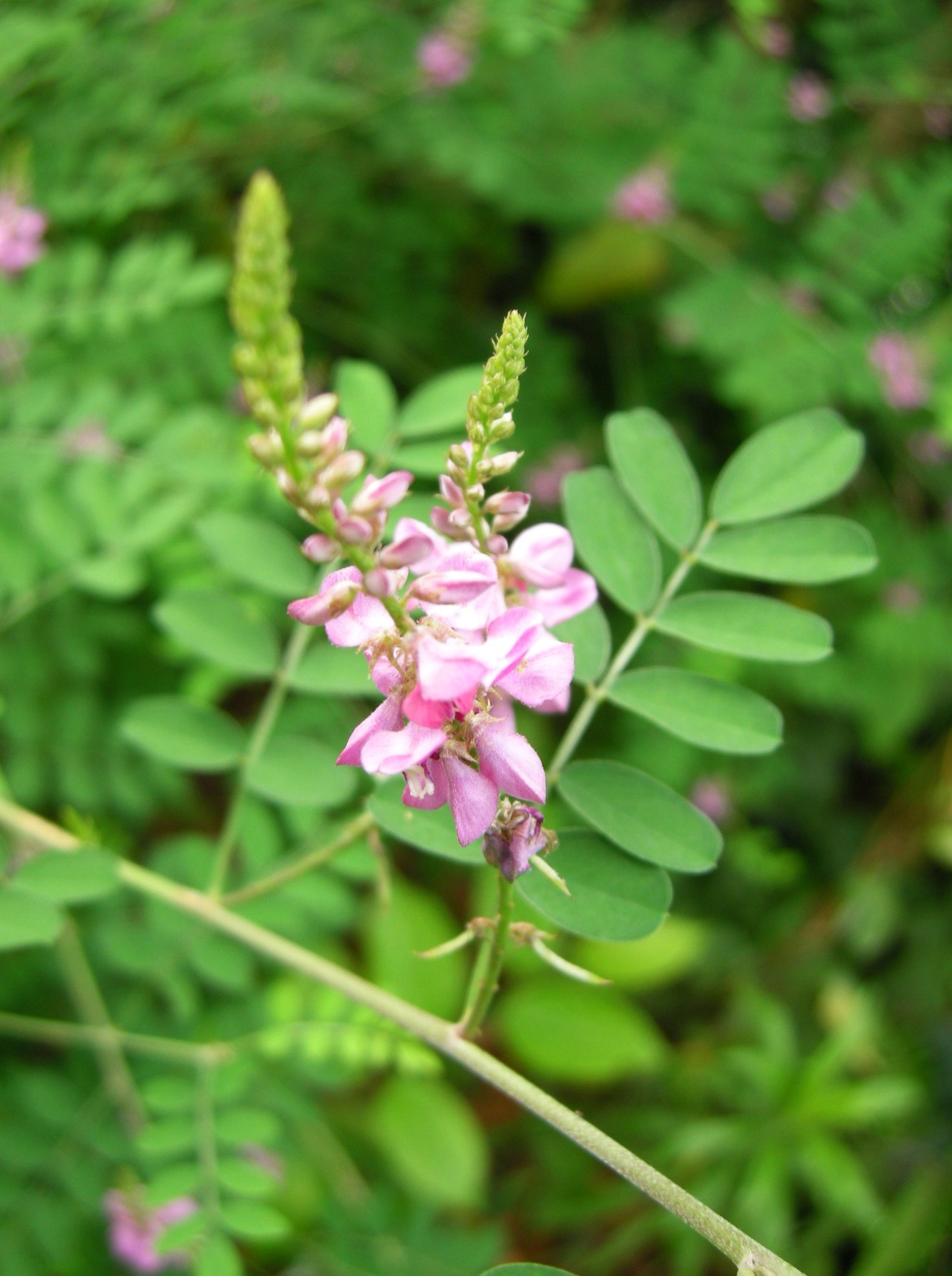 夏に穂状に集まって咲く花は小さなハギ(萩)を思わせるようで、地方によっては、ノハギ(野萩)、クサハギ(草萩)、カワラハギ(川原萩)などの名で呼ばれていたりします。