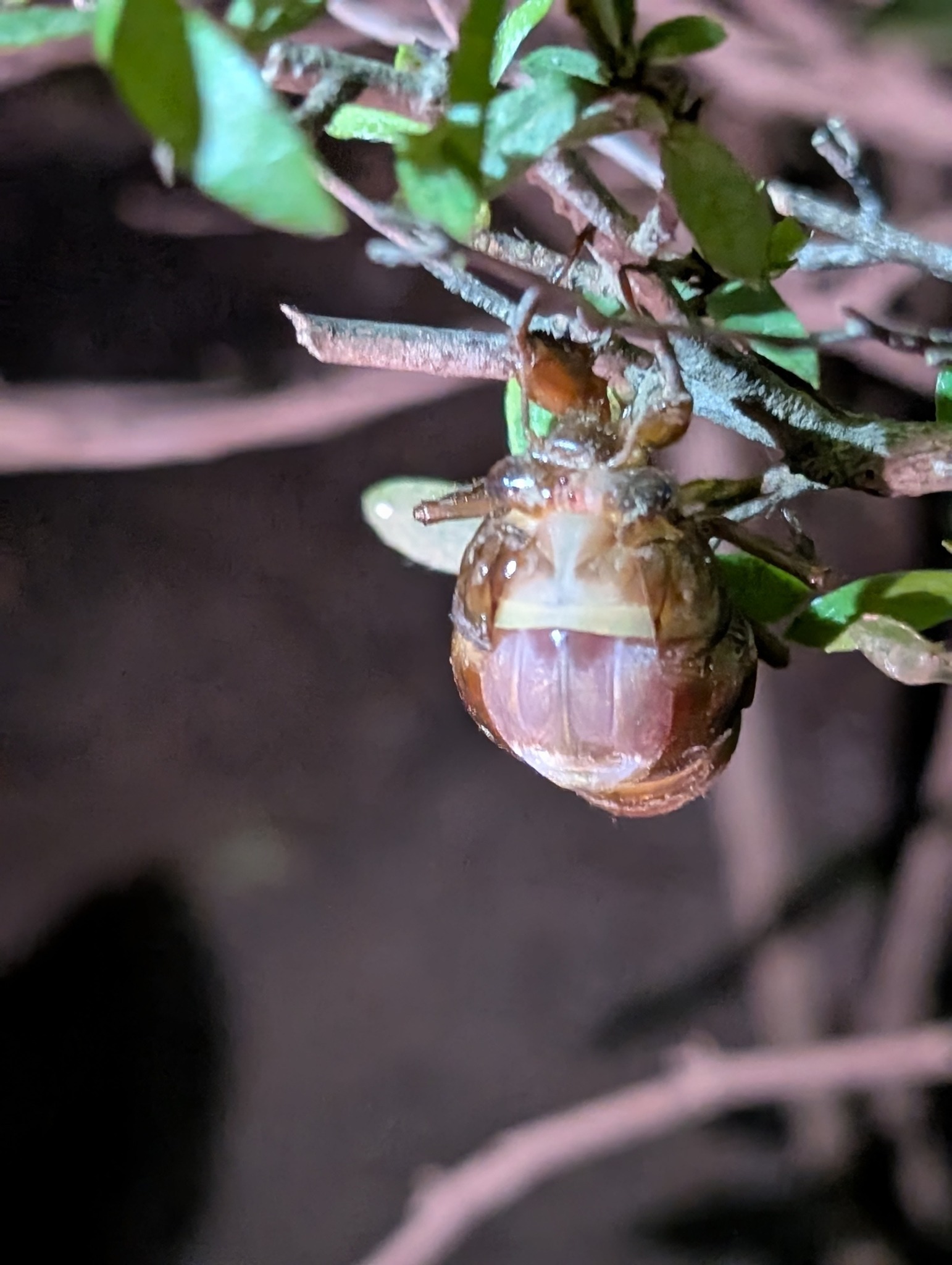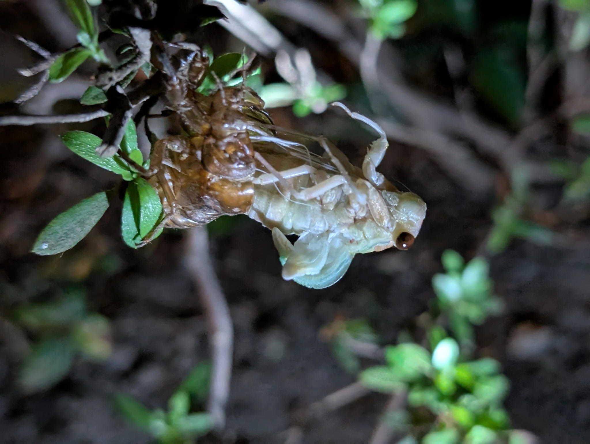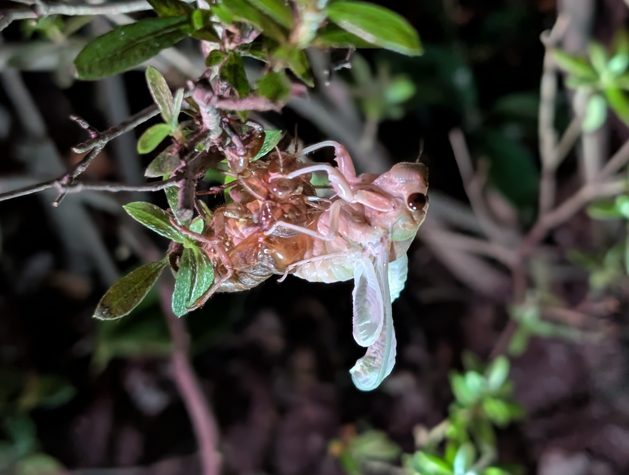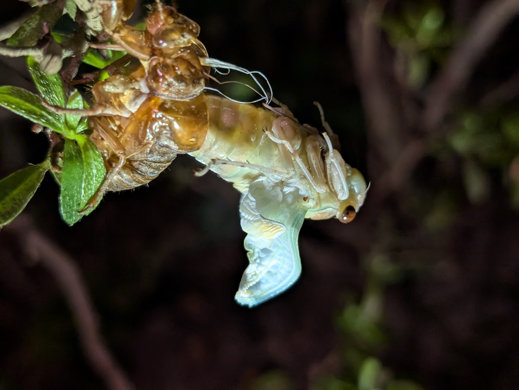羽化する時間帯は通常、鳥など天敵に見つかりにくい夕方から夜にかけて行われます。