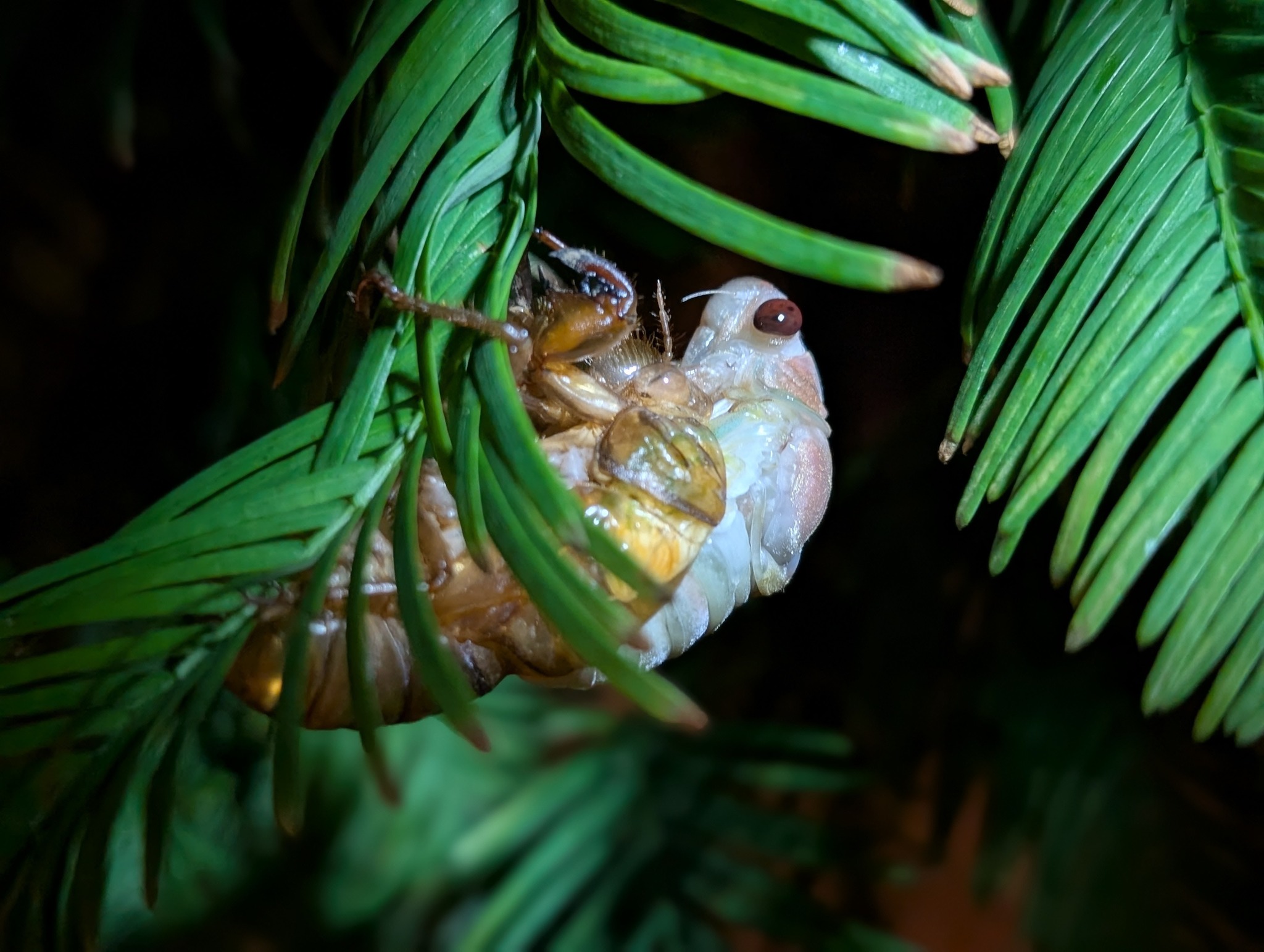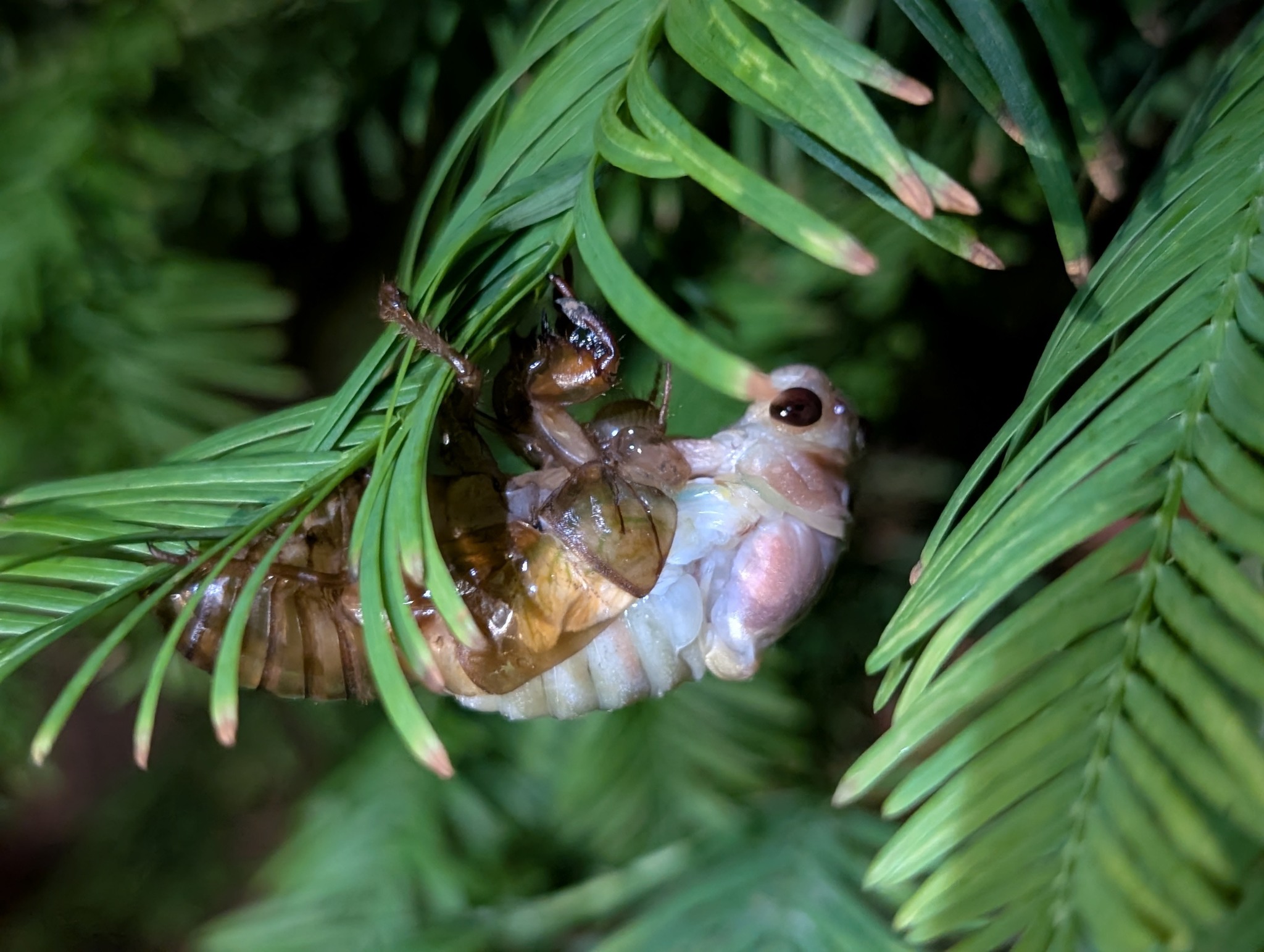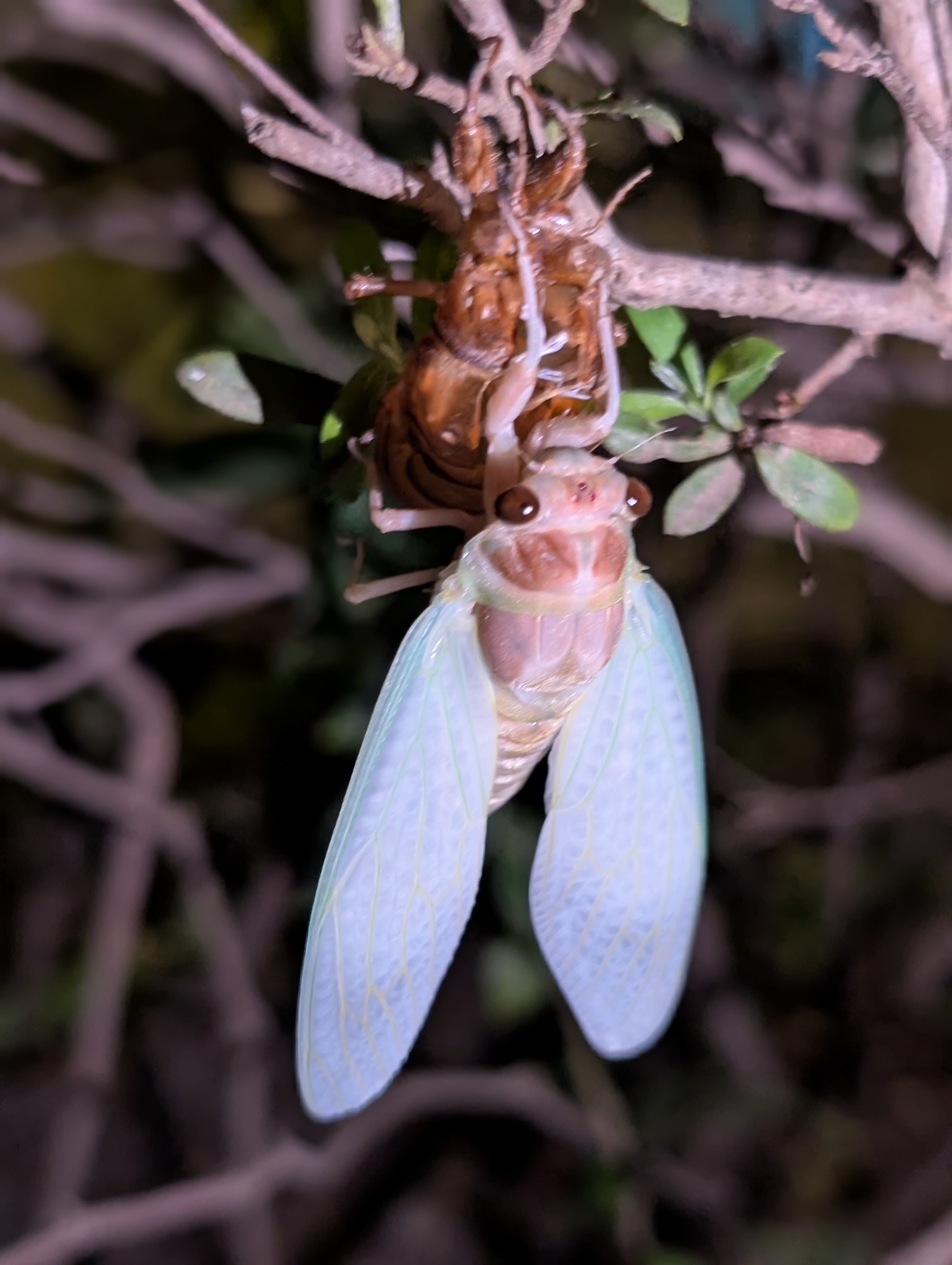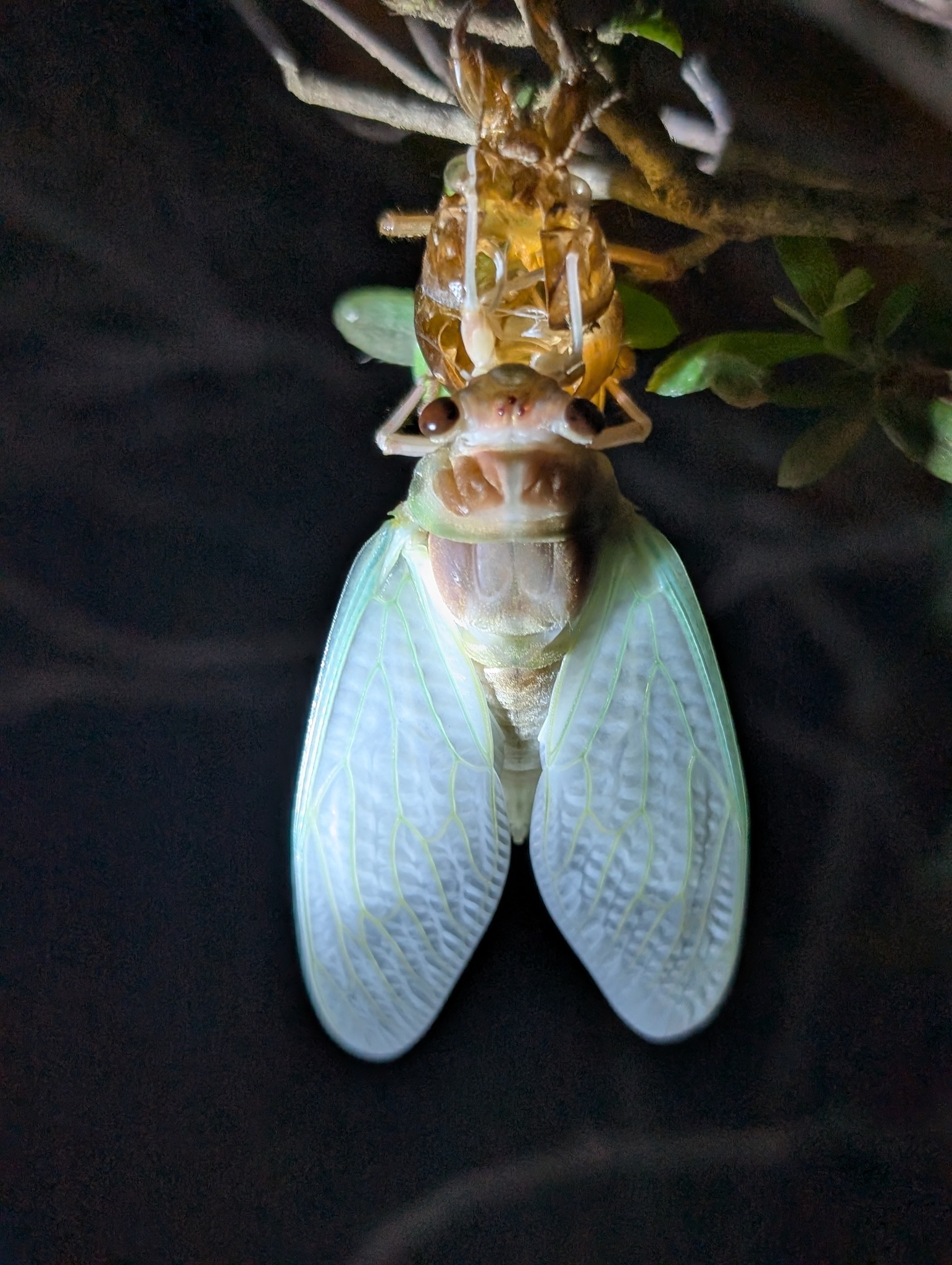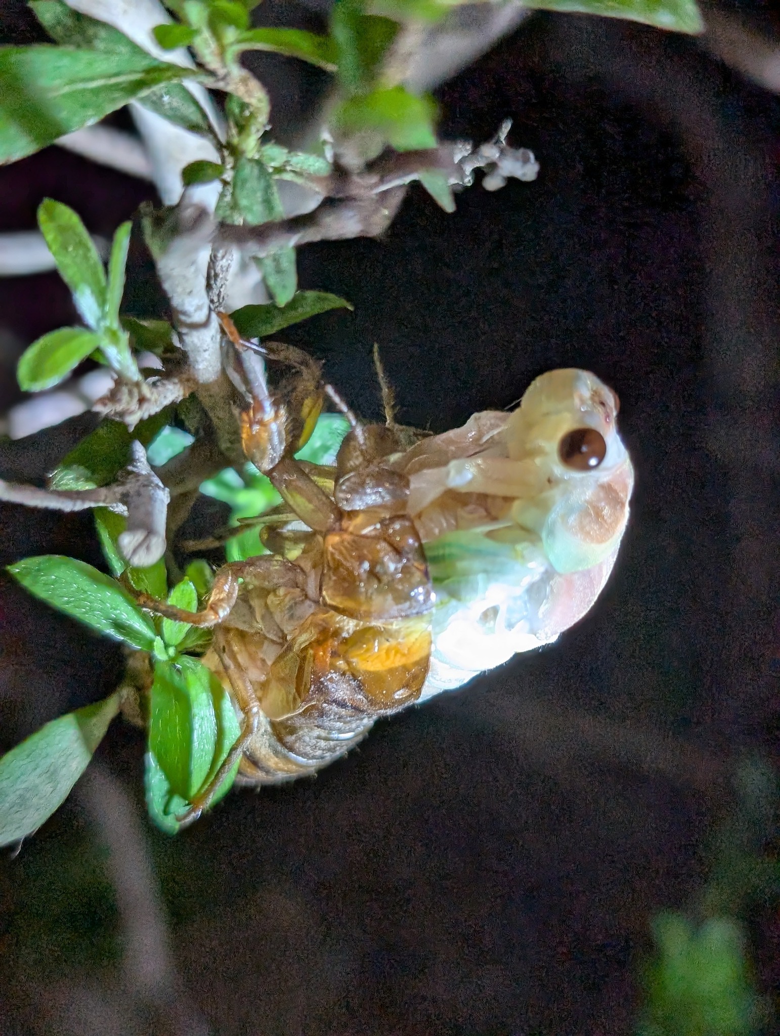 羽化する時間帯は通常、鳥など天敵に見つかりにくい夕方から夜にかけて行われます。