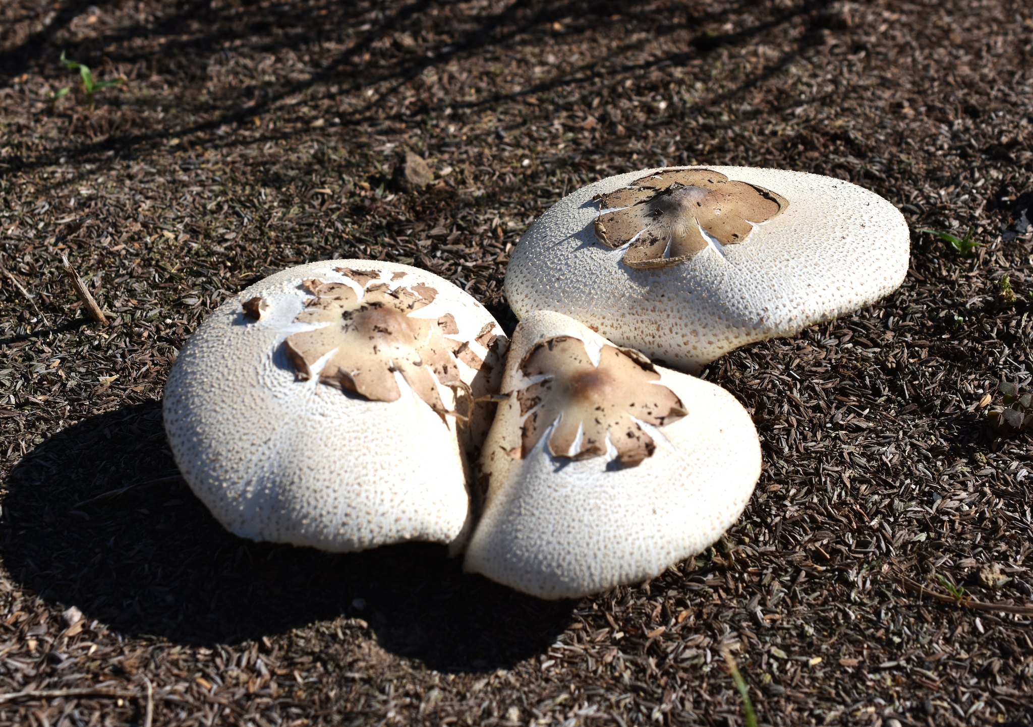 一方、オオシロカラカサタケは強い毒性を持つキノコです。1960年代には沖縄地方で複数の中毒例が報告されています。石垣島で中毒した人の話では、食後30分ほどでむかつきが始まり、嘔吐と下痢が交互に襲い、激しい腹痛もあり、地獄の苦しみとはこのようなものかと思ったそうです。その後、本州でもこのキノコによる中毒が散発しており、9名の集団中毒もありました。身近で見られるキノコですが、絶対に試食などしてはいけません。