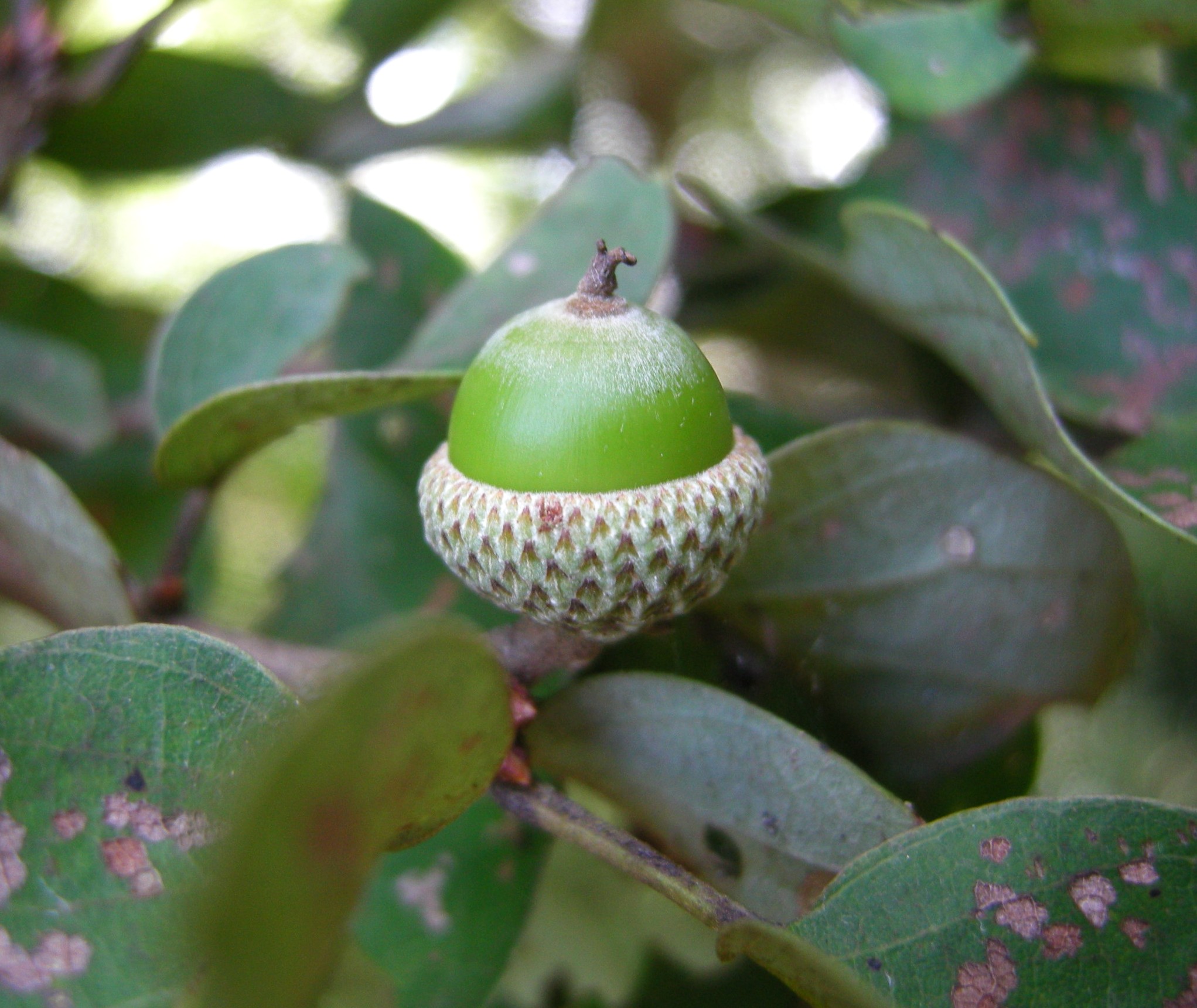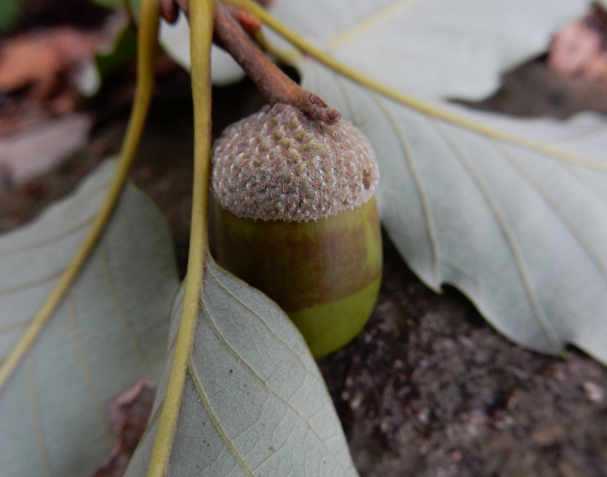 コナラは春に咲いた花(同じ株に雌雄の花が別々に咲きます)が秋には結実してドングリになります。