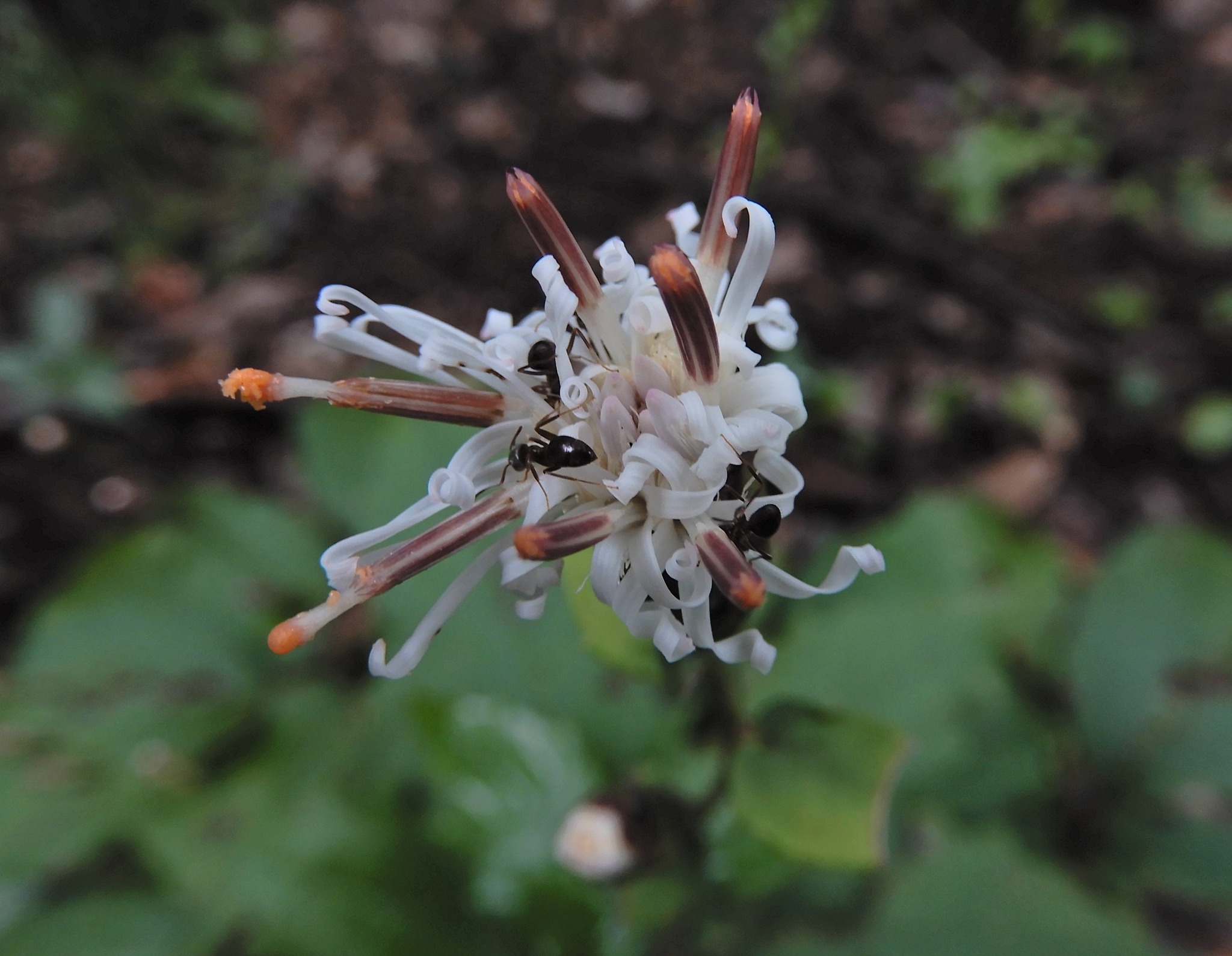 10個の小さい筒状花を束ねて1個の花の姿をしています。