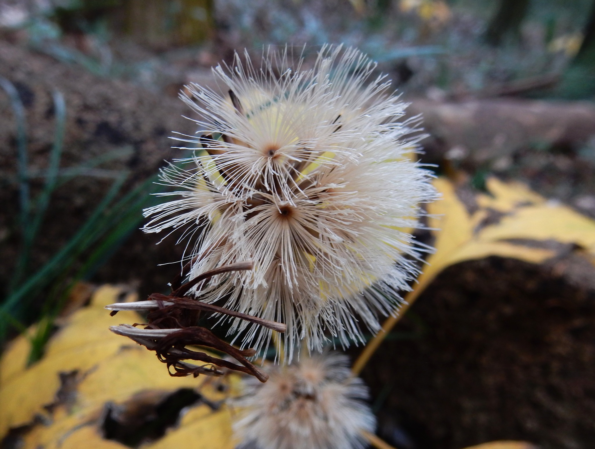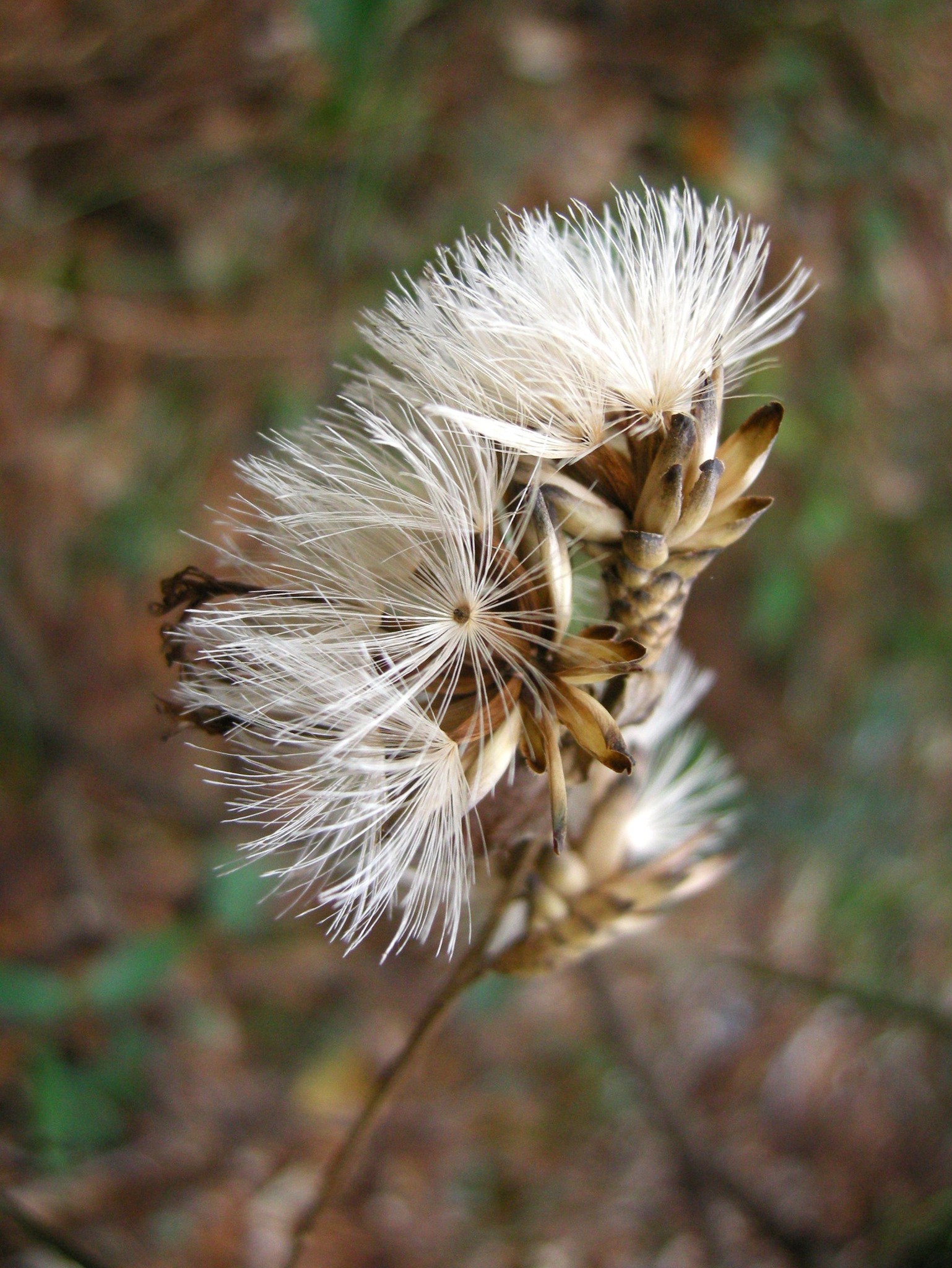 花後、長さ1㌢ほどの細長い種子を作ります。種子には1㌢を超える長さで、ちょっとごわごわした感じの冠毛(かんもう:綿毛)があり、風に乗って飛散します。不稔の種子もあり、発芽率はあまり高くないという報告があります。