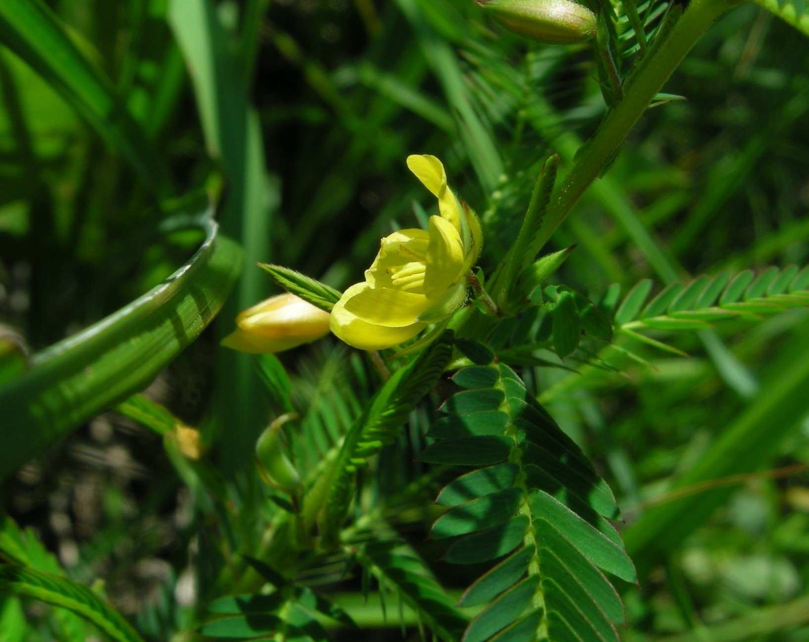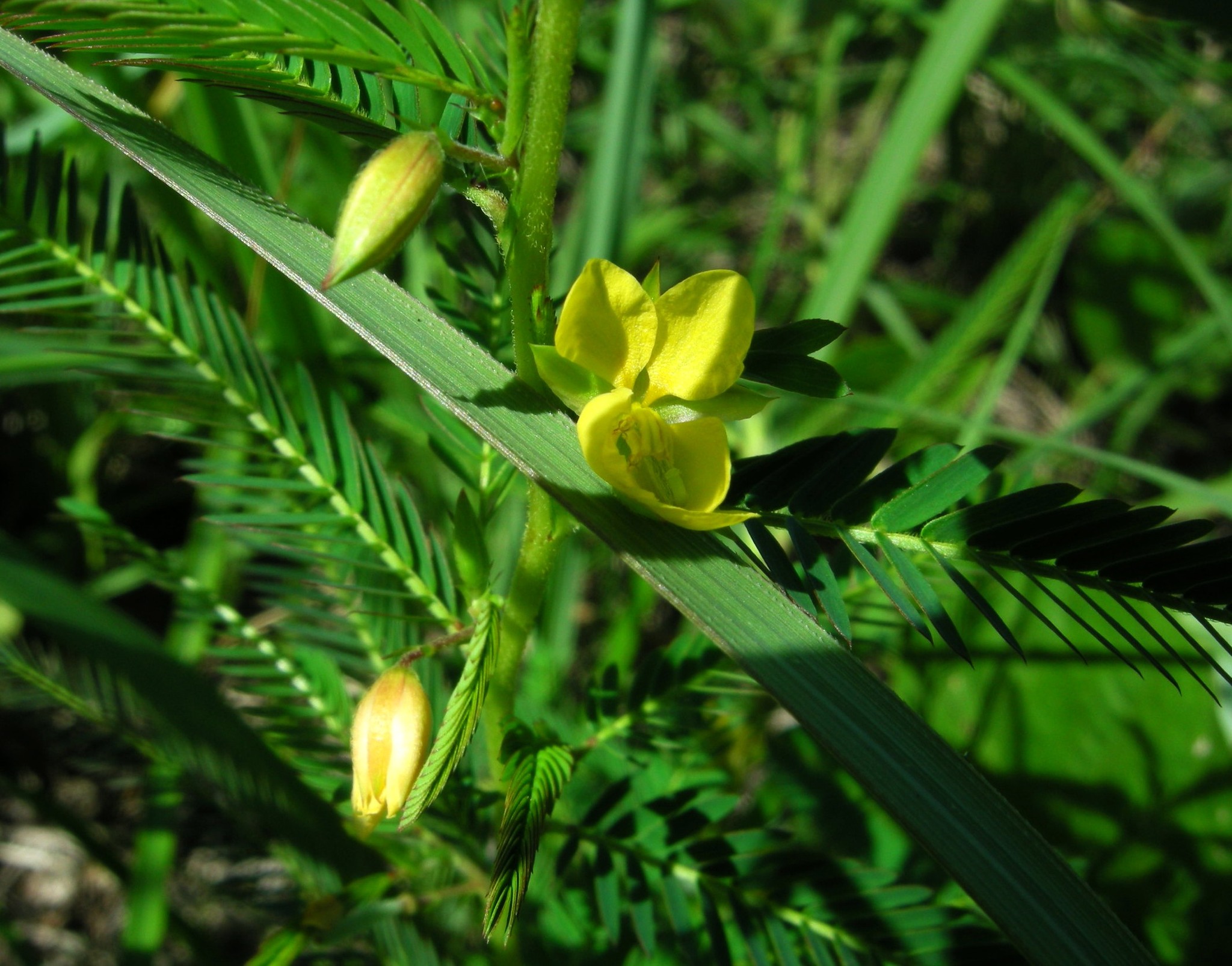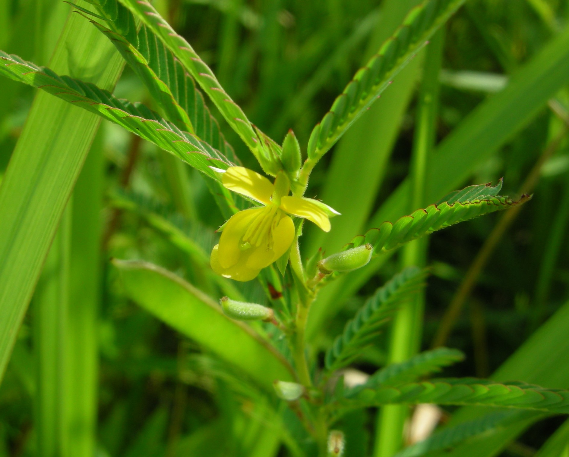 草姿から、園芸植物として売られているオジギソウ(南米原産)と間違えらえる方もありますが、オジギソウのように、葉に触っても葉が閉じたりすることはありませんが、暗くなったりすると葉を閉じます。