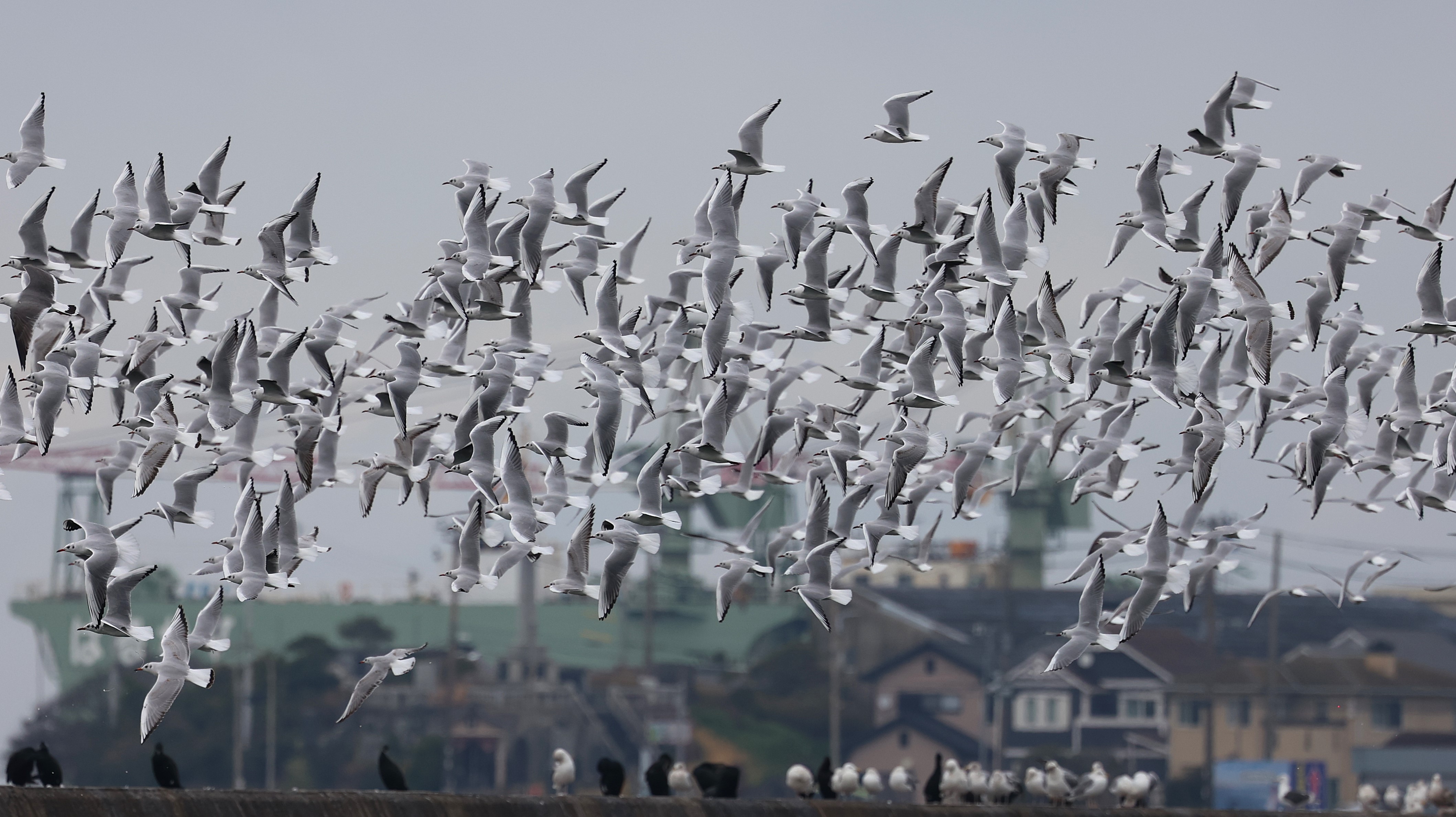 日本には冬になると沢山のカモメが渡ってきます。主な物は9種類で、大型のカモメはセグロカモメ、オオセグロカモメ、ワシカモメ、シロカモメの4種、中型のカモメはウミネコとカモメの2種、小型のカモメはユリカモメ、ズグロカモメ、ミツユビカモメの3種です。カモメと言うのはこれら全体を指すことも有りますが、単体の種としてカモメもいますので、バードウオッチャーは区別するために、単体の種としてのカモメは只カモメと呼んだりします。ちょっとややこしい所です。