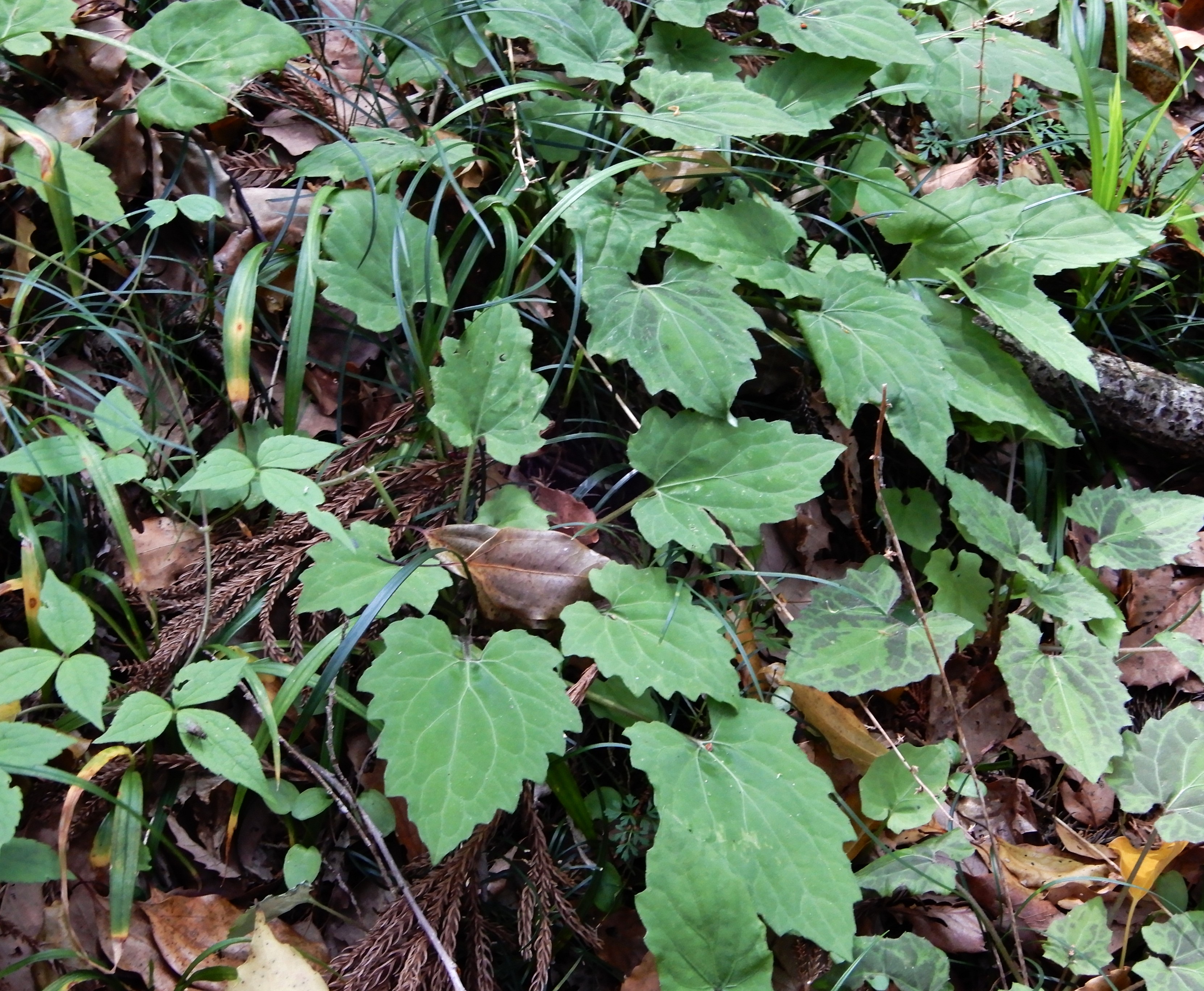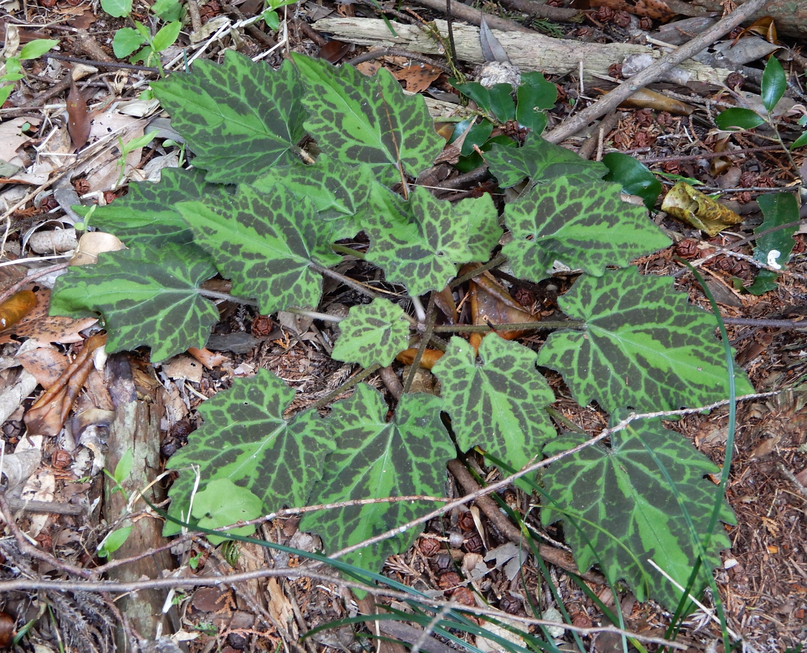 春の芽吹きの季節には、斑紋の見られる株が多いのですが、全ての株の葉にあるとも言えません。夏になると、ほとんどの葉に斑紋は見られません。秋、開花時期には再び斑紋が見られる株が増えます。種子から発芽したばかりの葉には斑紋は見られません。なんともミステリアスなことです。