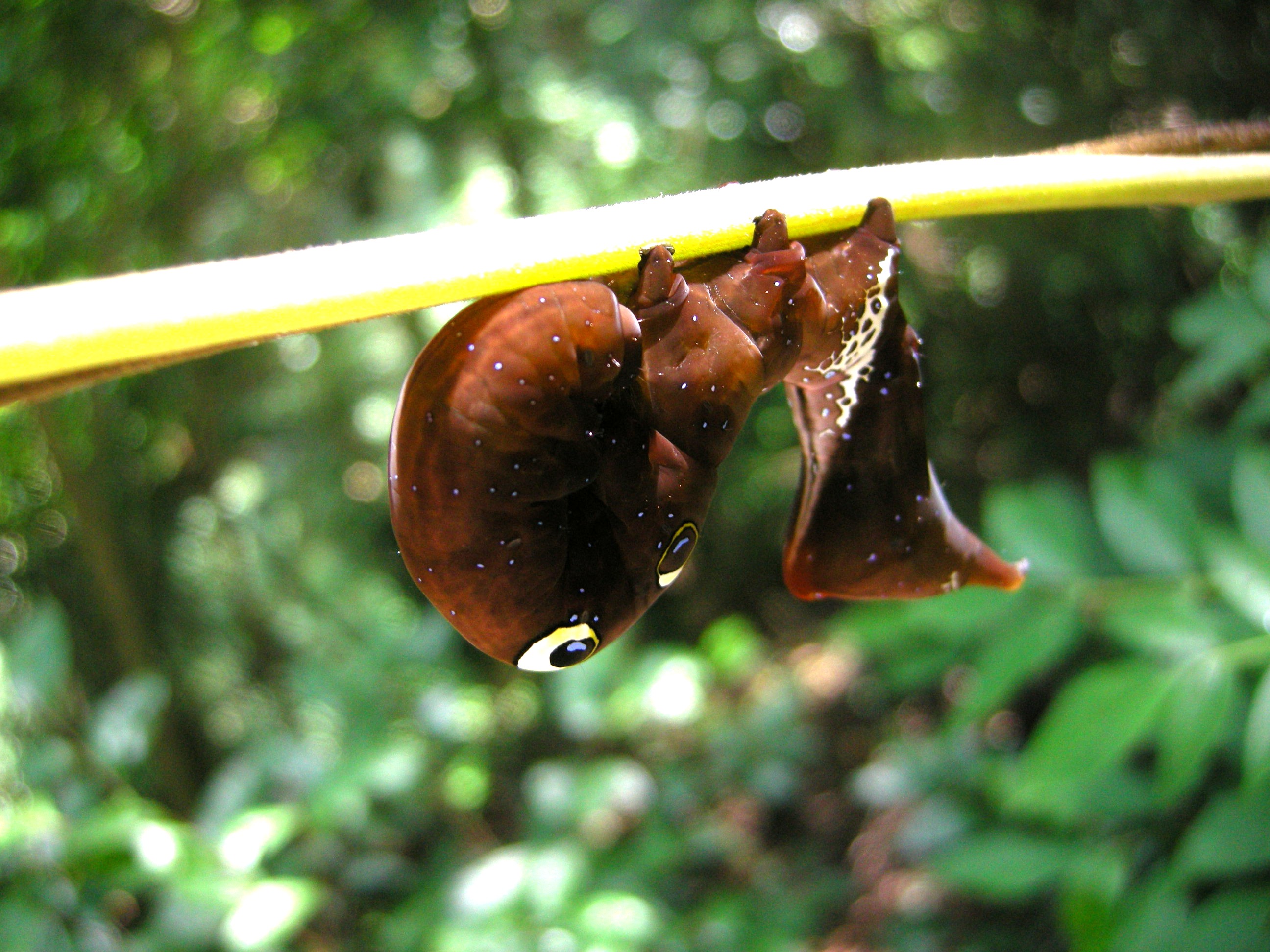 たまにアケビコノハという蛾の幼虫がいて、驚かされることもあります。