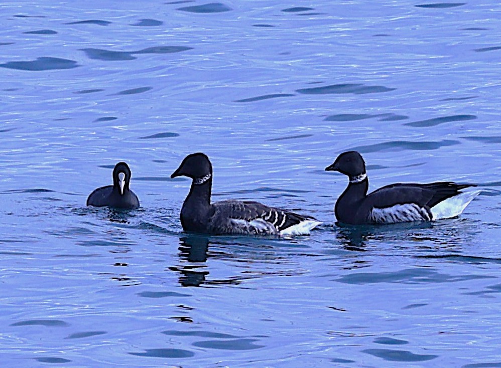 オオバンには大きなコクガンと一緒にいることで猛禽などの天敵から身を守りやすいとか、何か理由が有るのかもしれません。