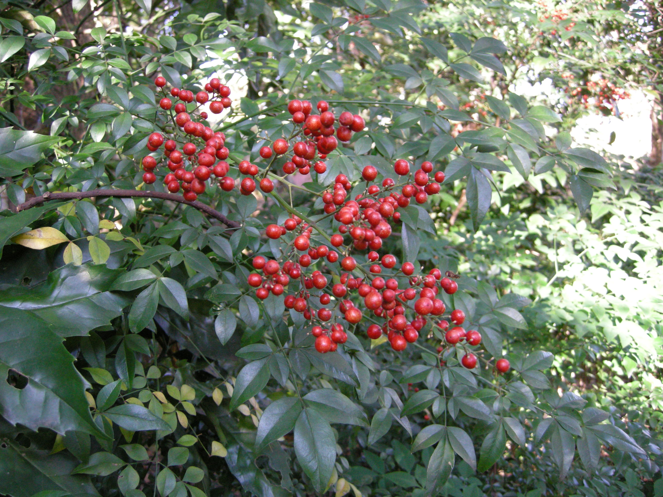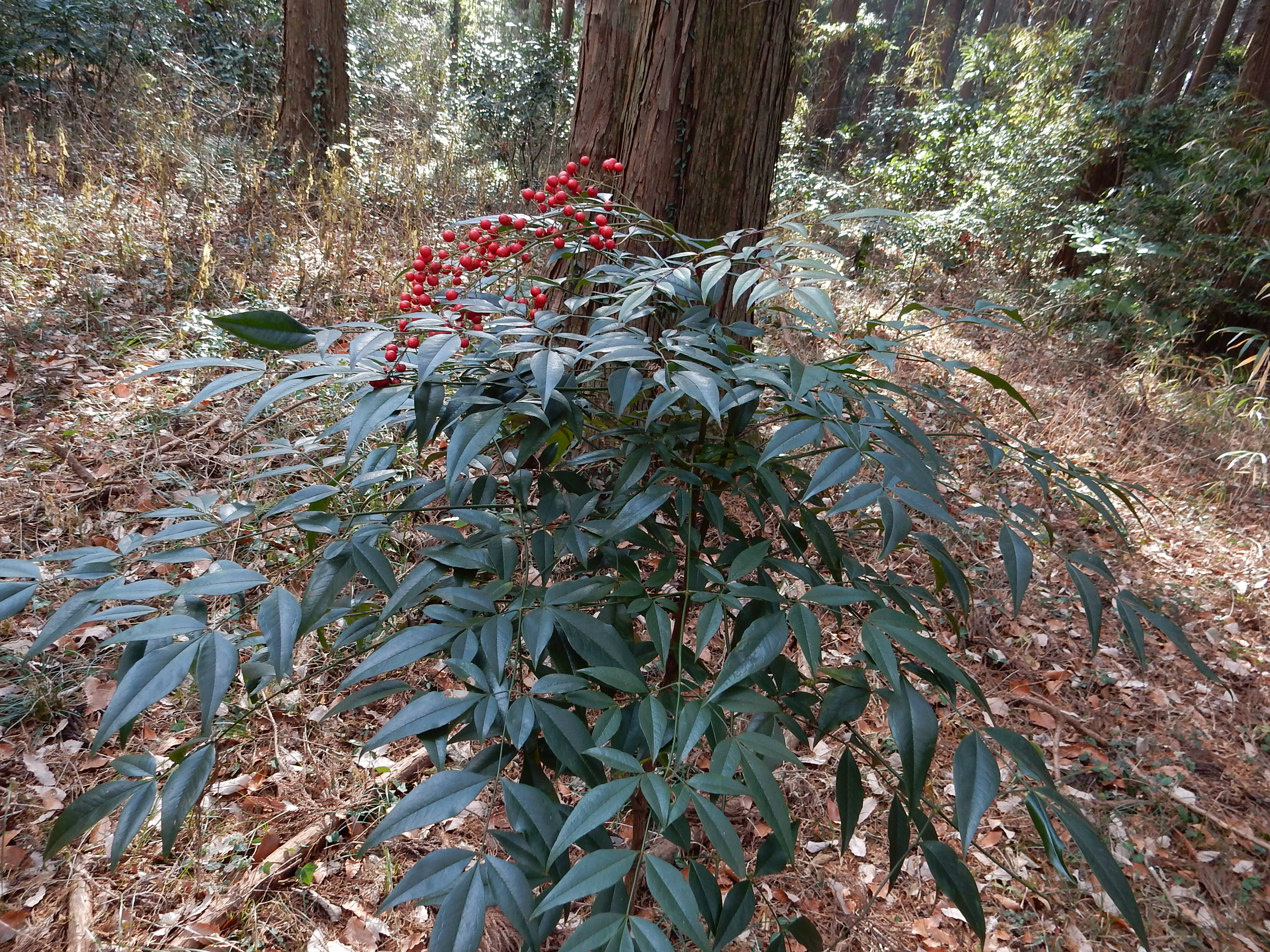 近年、住宅地に近い雑木林などでは、民家の庭から鳥に運ばれ、実生繁殖したナンテンが見られるようになっています。