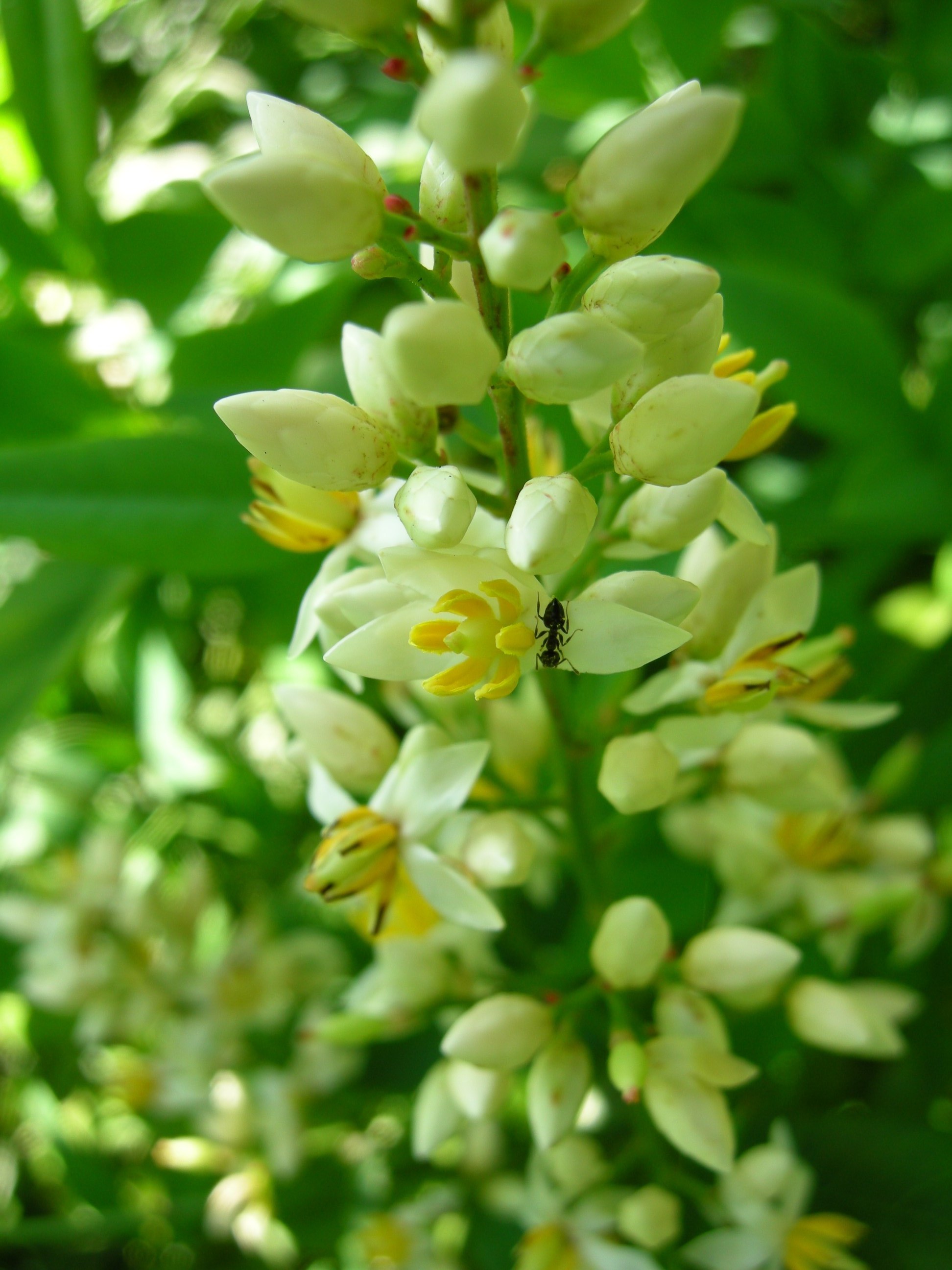 夏に咲く白い花には訪花するアリの姿を見かけます。