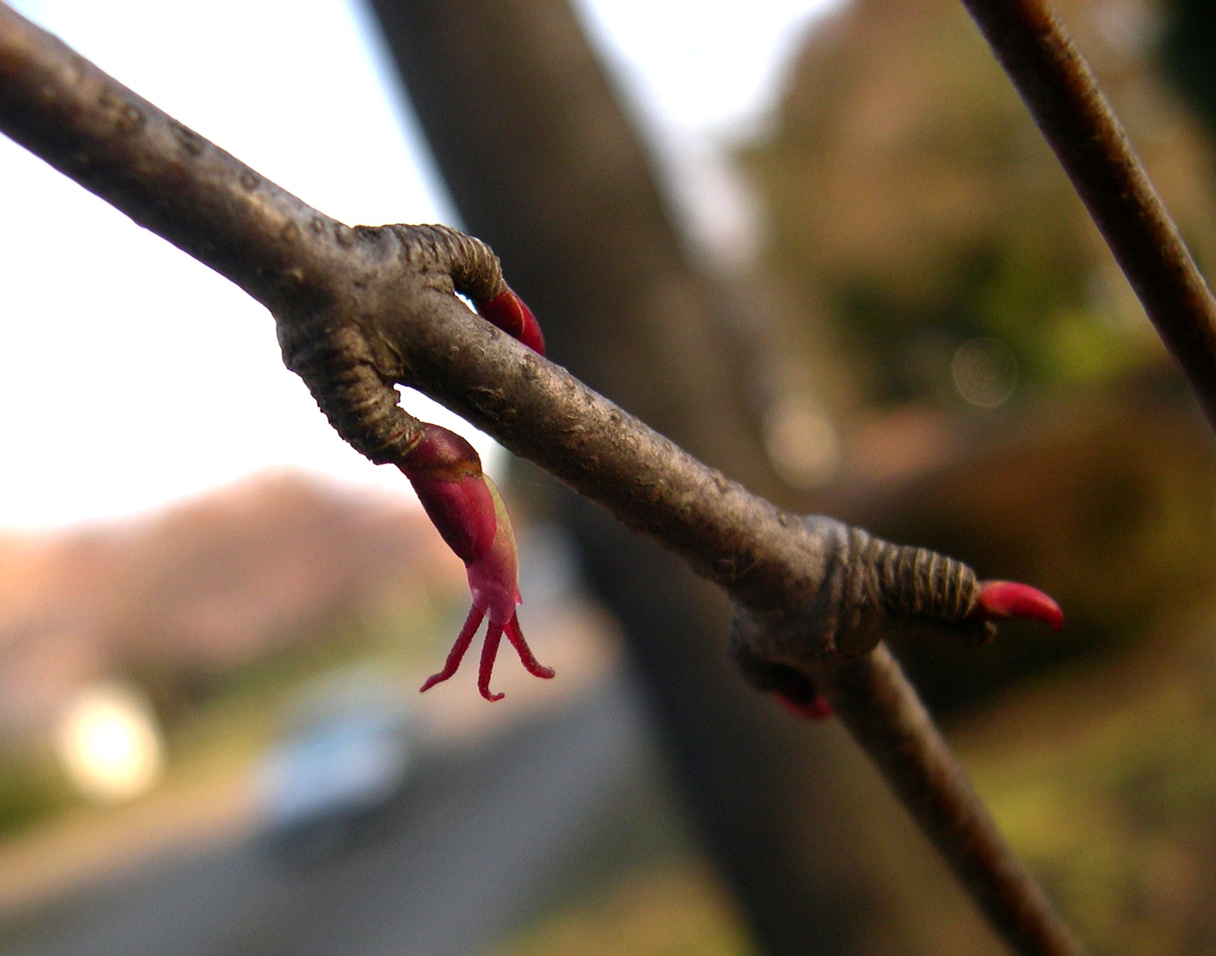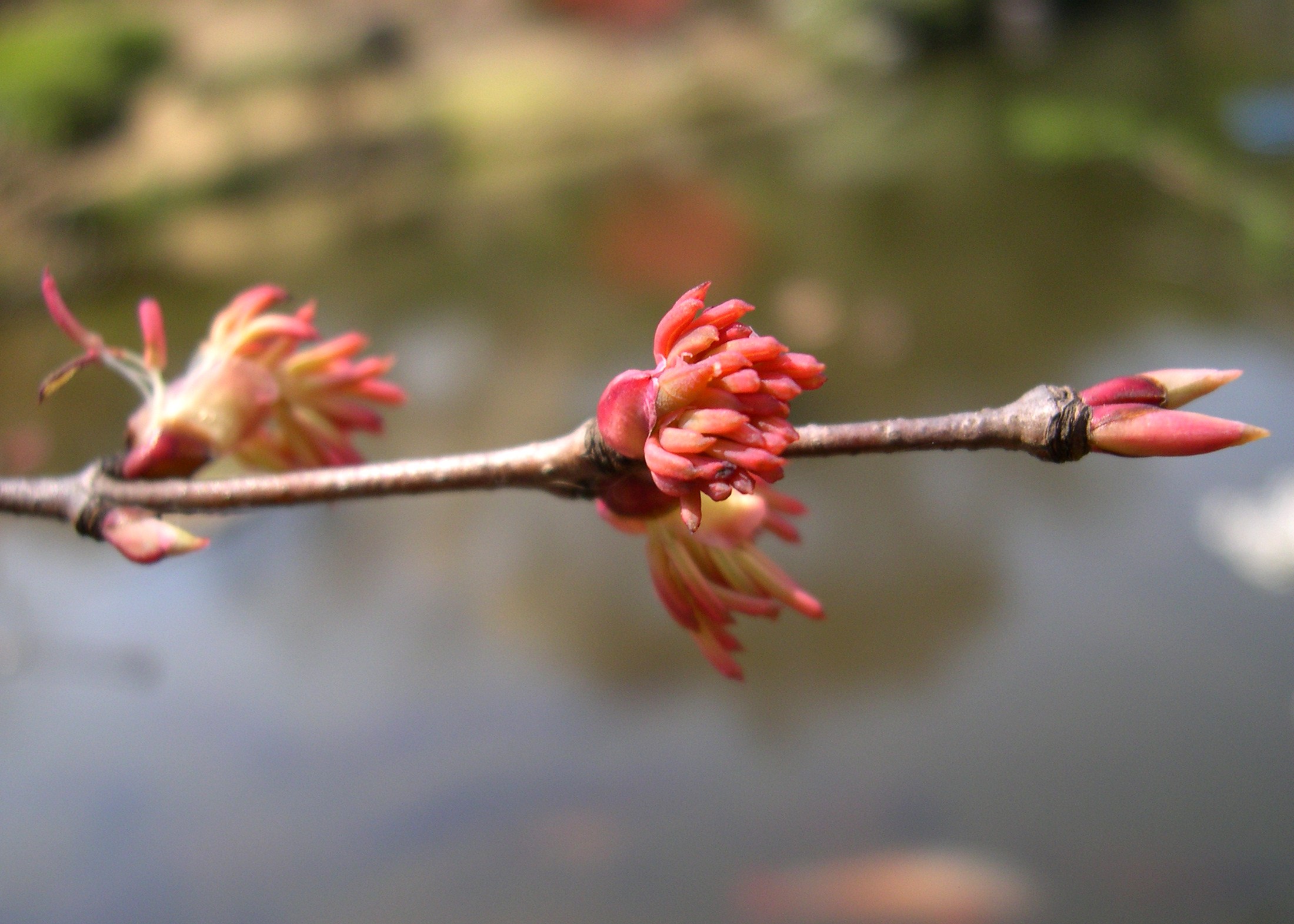 雌雄異株で、早春に、開葉に先駆けて咲く花は花弁はなく、雄しべだけの雄花(花粉は風が運びます)と、雌しべだけの雌花で地味なのですが、雌雄の花は、共に赤味を帯びており、谷を赤く染めるなどと表現されることがあります。マニアックなファンも多くいらっしゃいます。