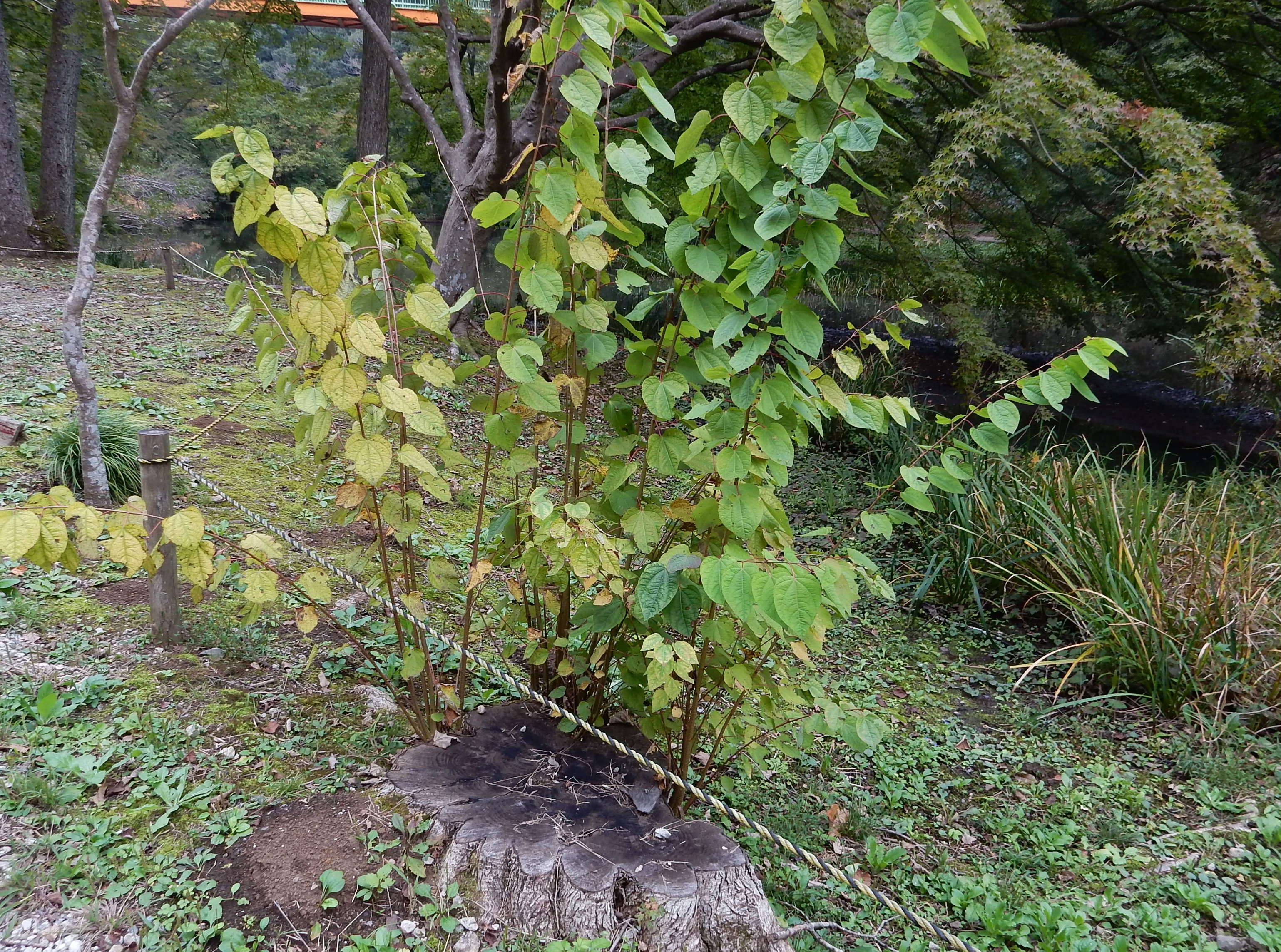 円い葉は秋の紅葉時、「キャラメルのような」などと表現される甘い香りがして人気を集めます。