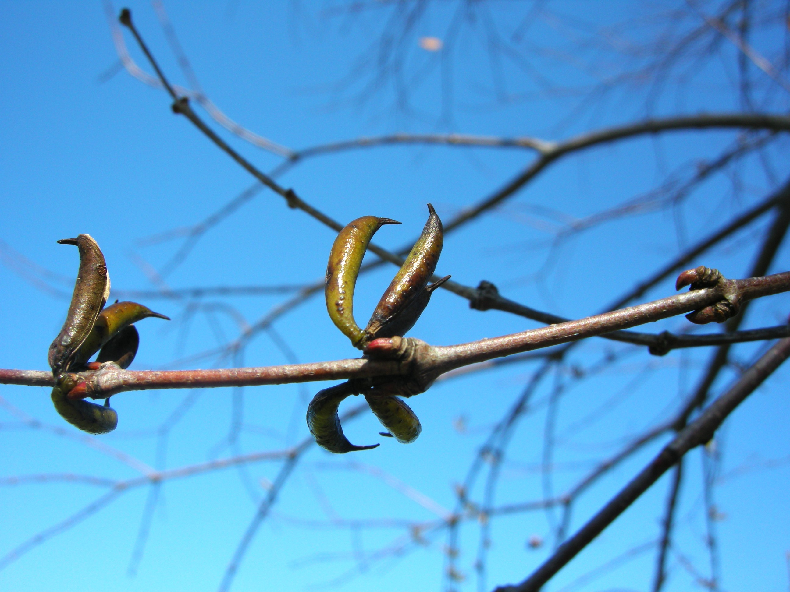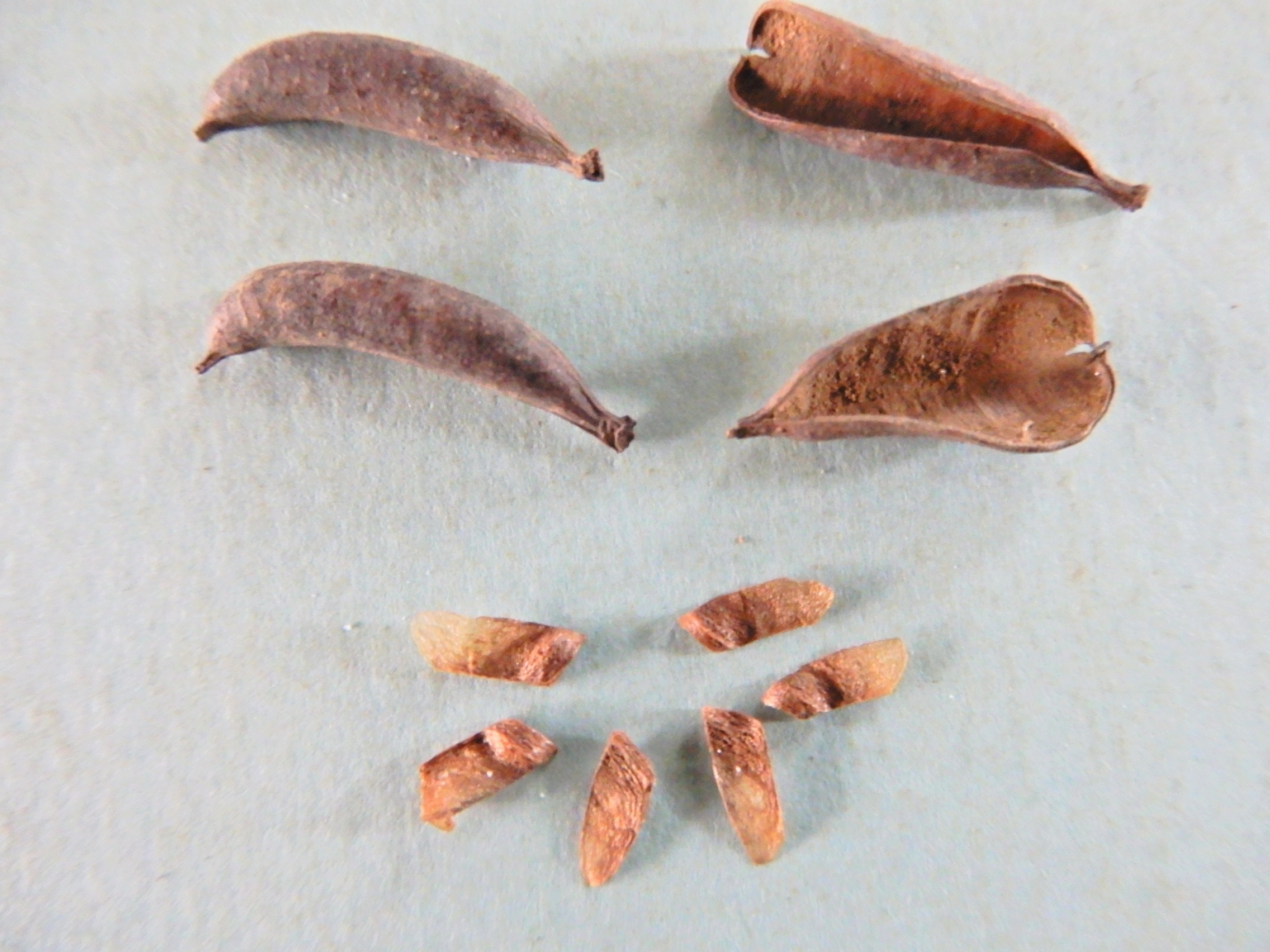 小さいバナナと表現される果実は、翼のある小さい果実を風に飛ばします。