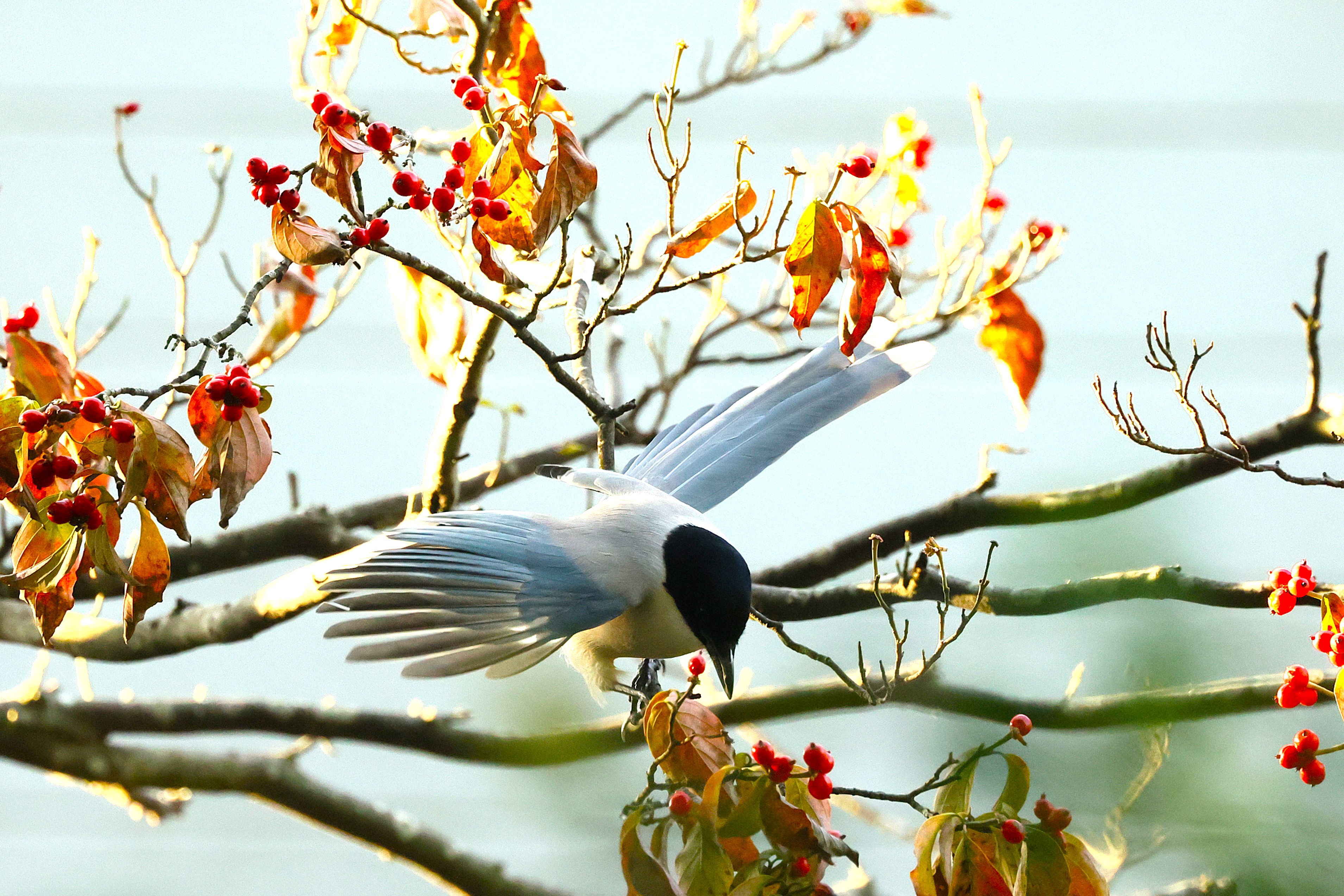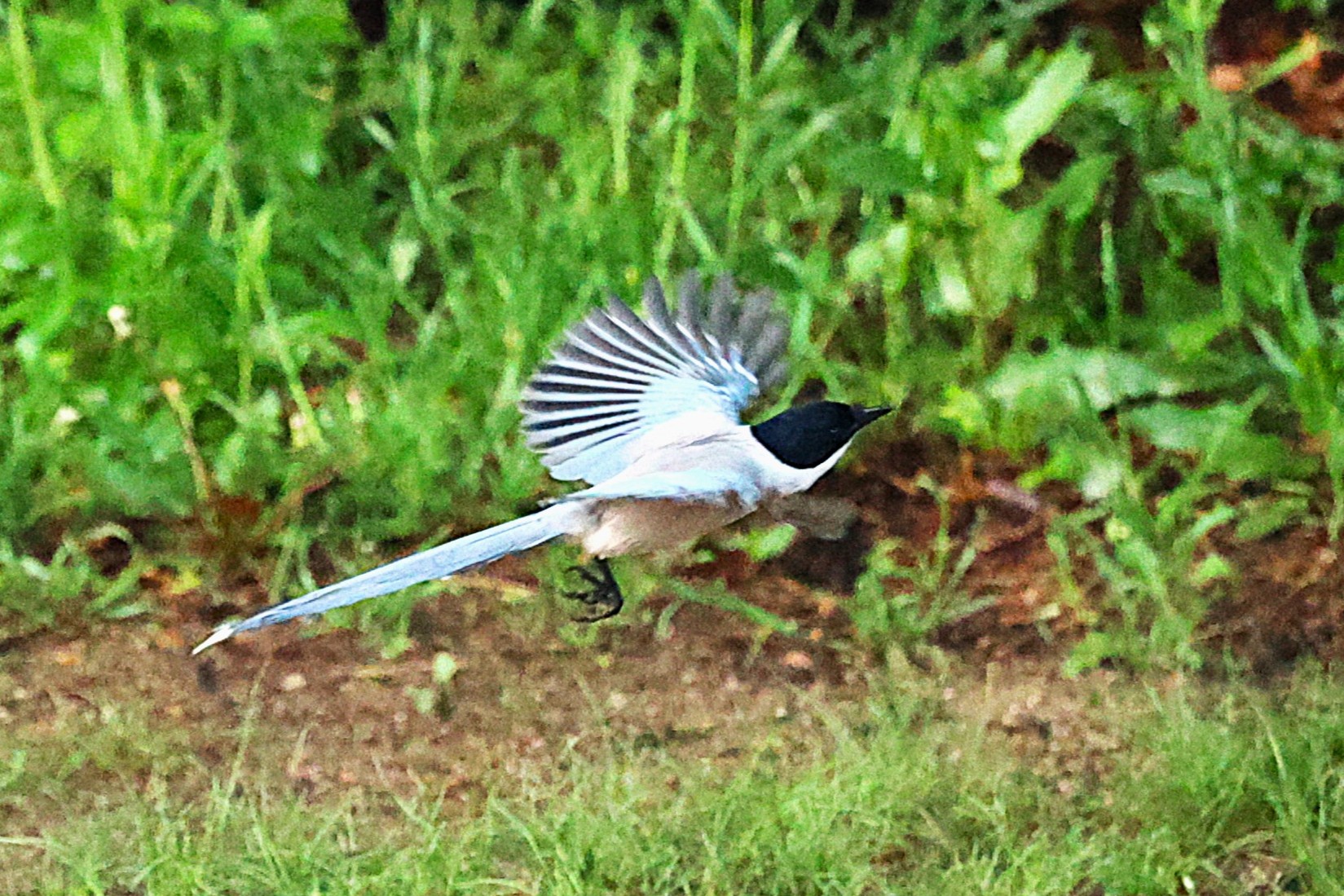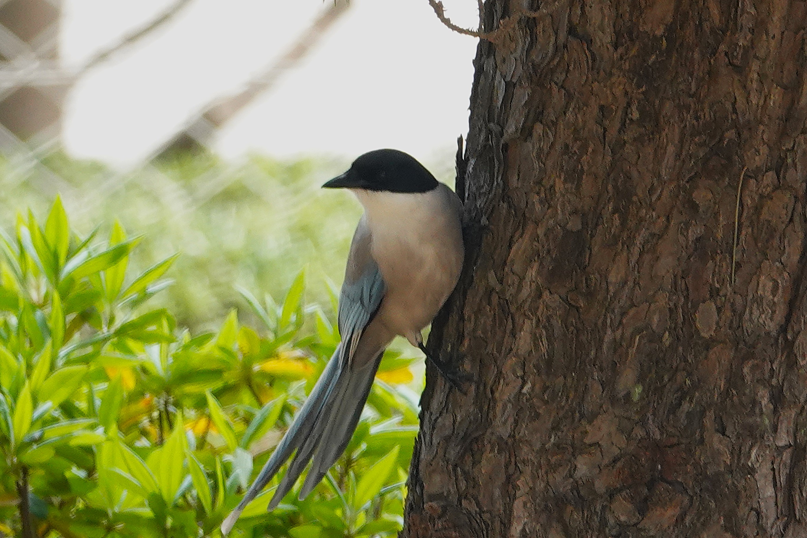名前の由来になっている青灰色の長い尾、ベレー帽をかぶったようなお洒落な黒い頭、喉から胸にかけては白く、体型もスマートですっきりしています。