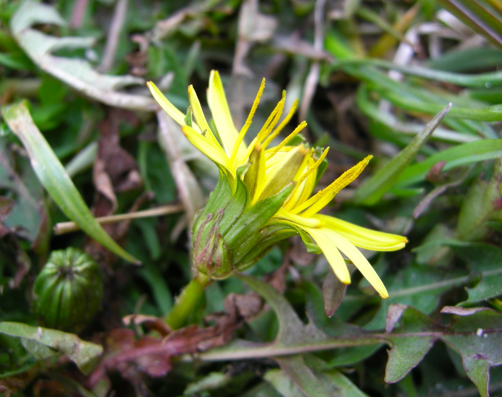 シロバナタンポポは関西方面に多い在来種ですが、総苞片は下に向きますので要注意です。