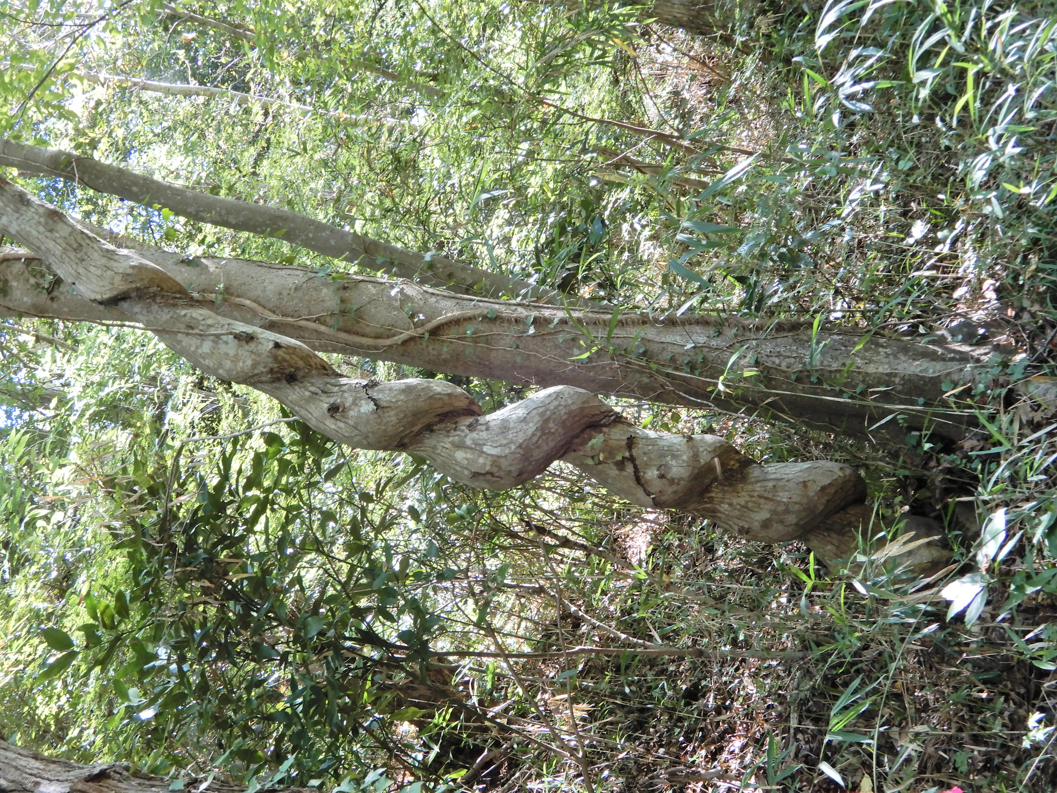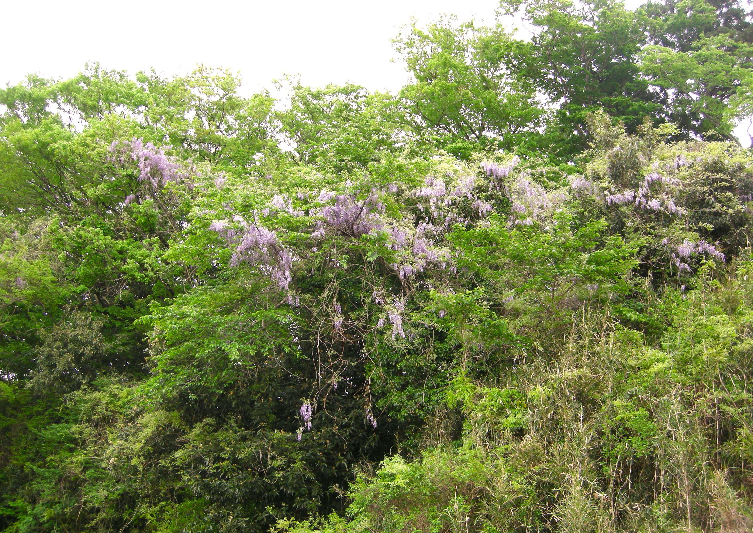 近年、山に人が入らなくなり、フジは伸び放題の状態になって多くの花を咲かせるようになっています。フジ蔓が巻きついた木は締めつけられて真っすぐな木に成長できません。山が荒れている証とも言えます。